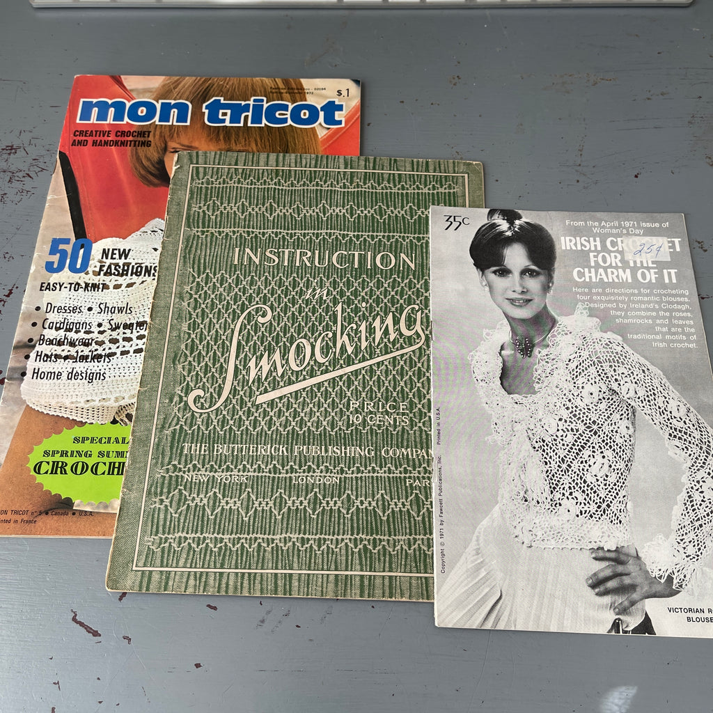 Set of 3 mon tricot creative crochet and hand knitting, Instruction in Smocking, Irish Crochet for the charm of it