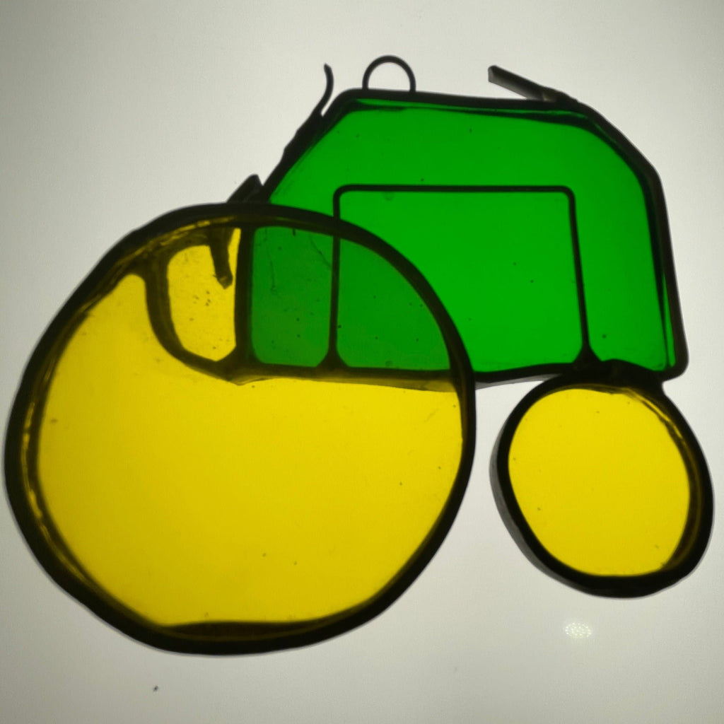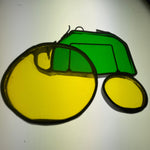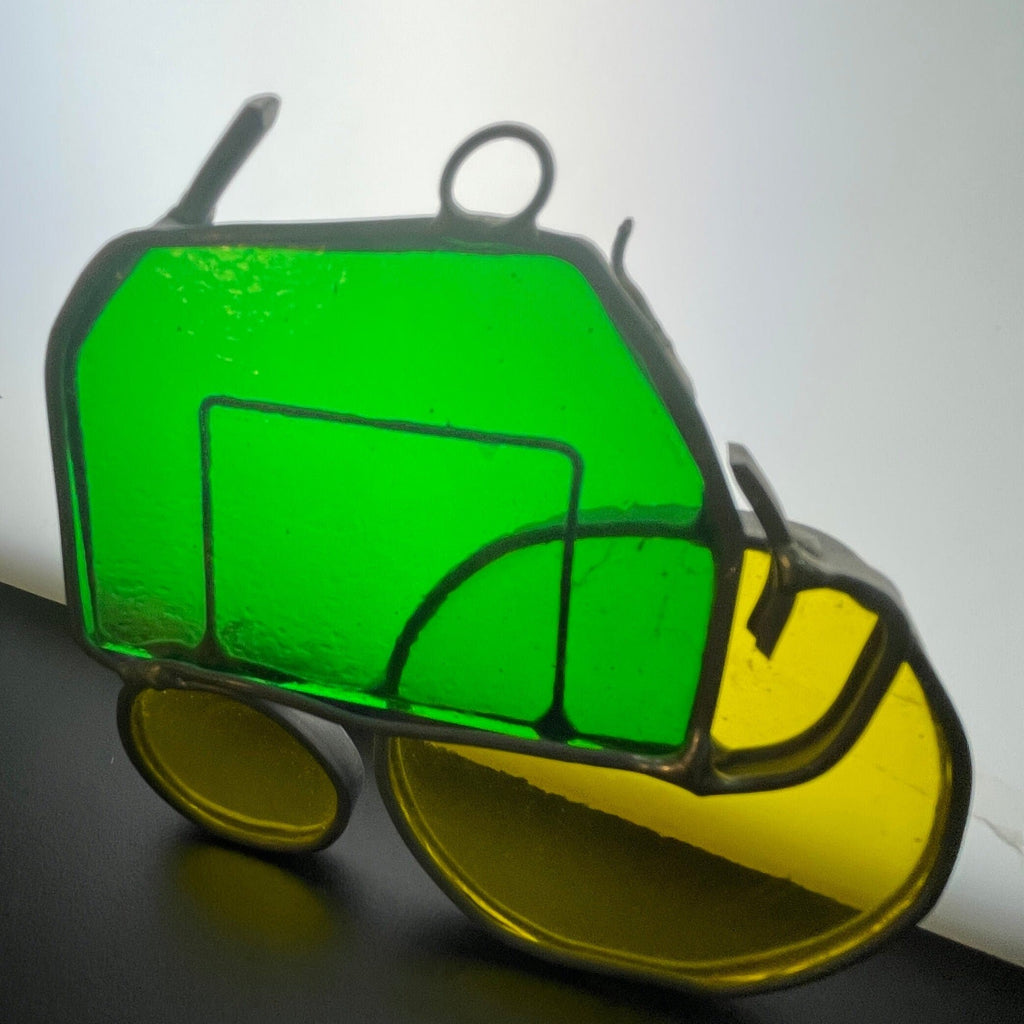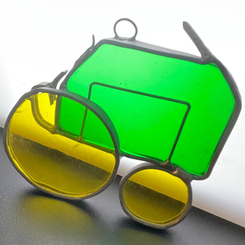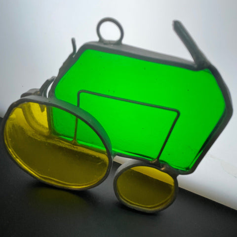 Tremendous tractor green and yellow stained glass vintage collectible ornament