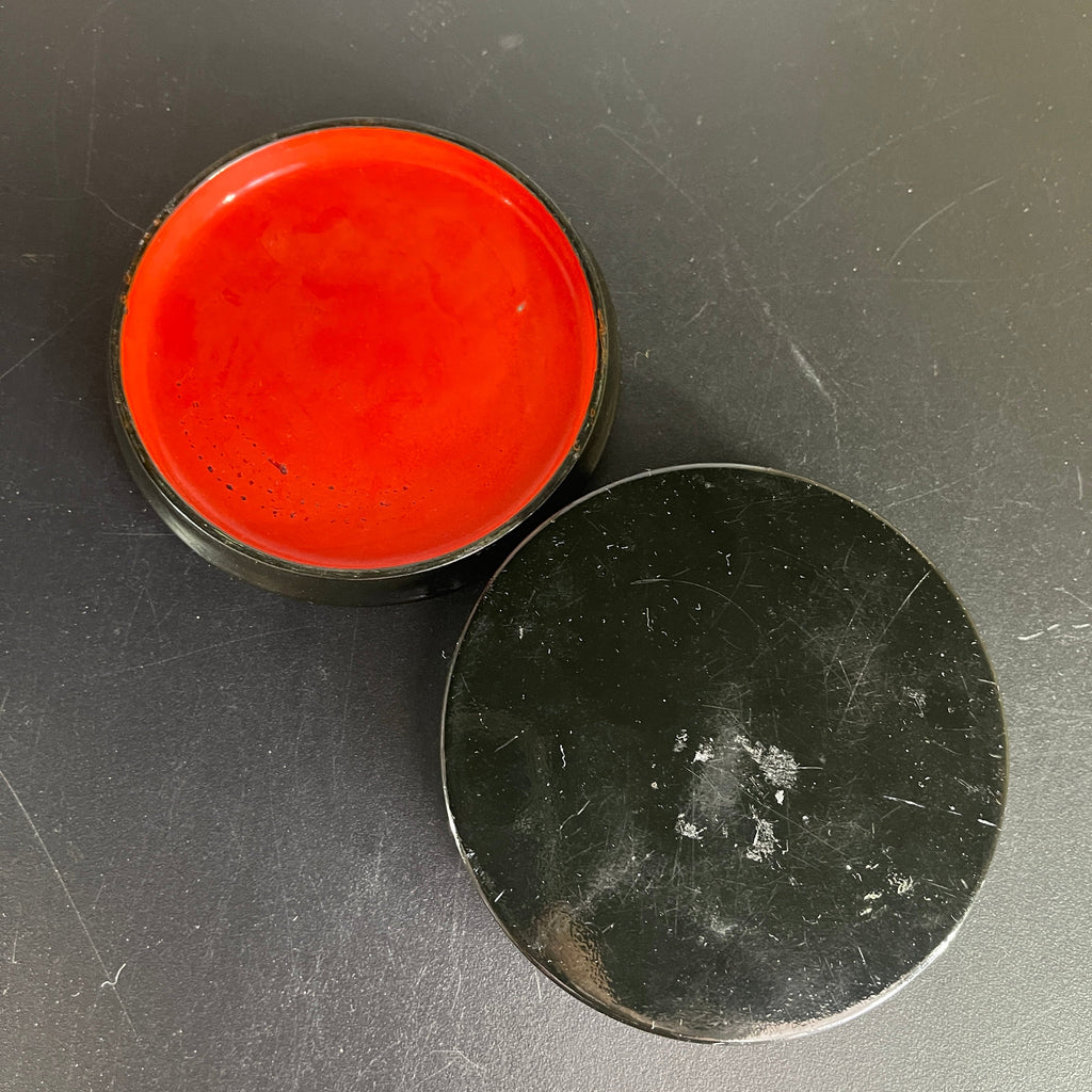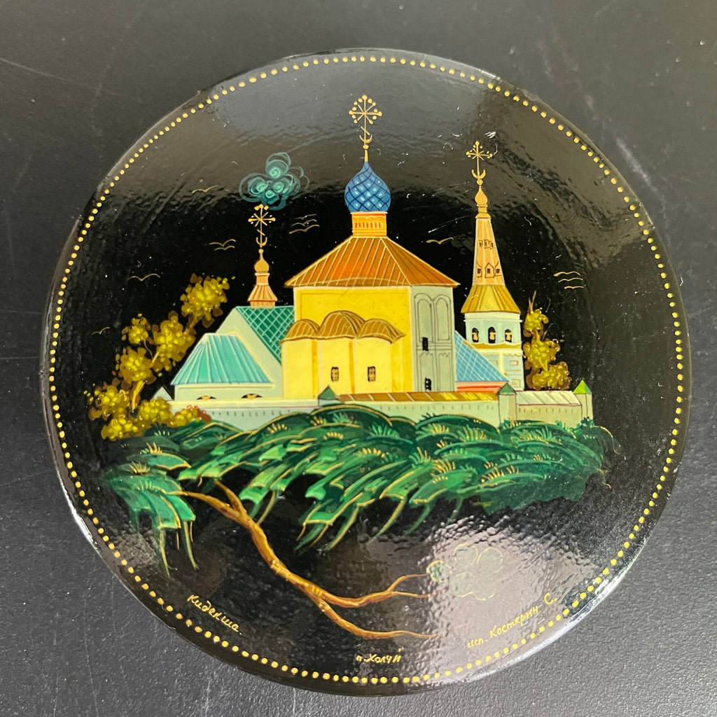 Beautiful Byzantine church hand painted round lacquered vintage wooden black trinket keepsake box