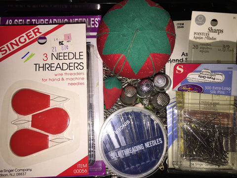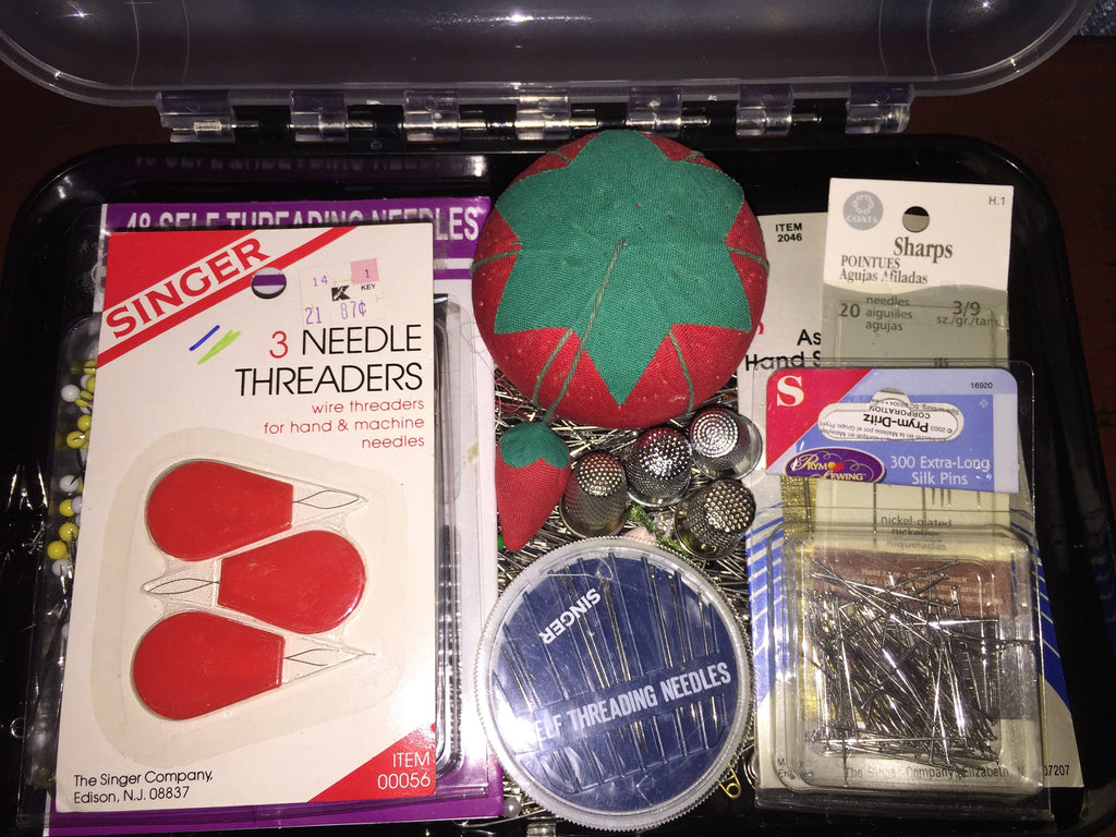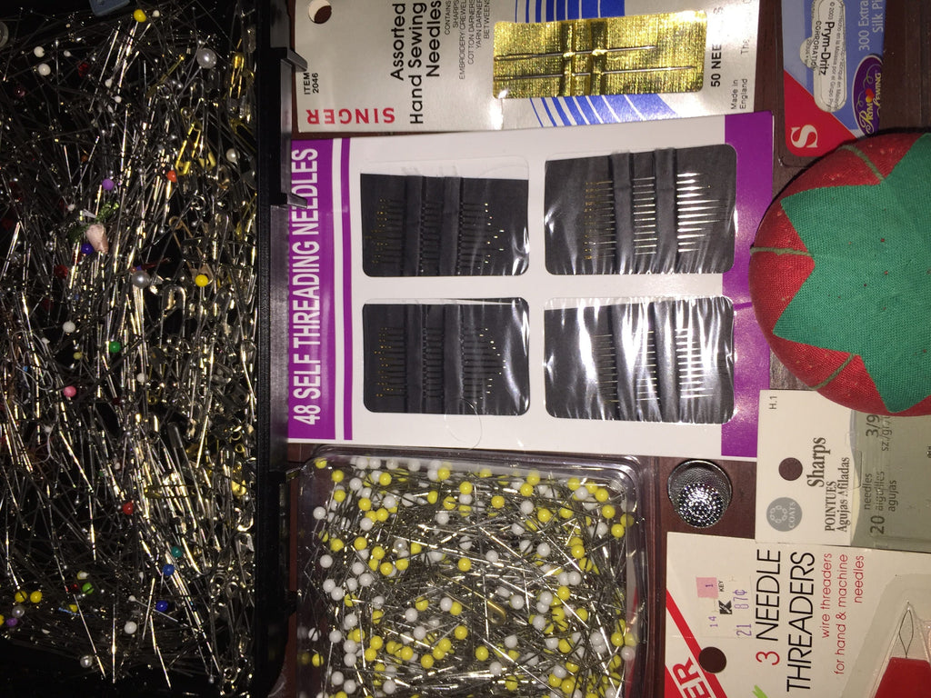 Sewing needles and pins in a great little sewing organizer box