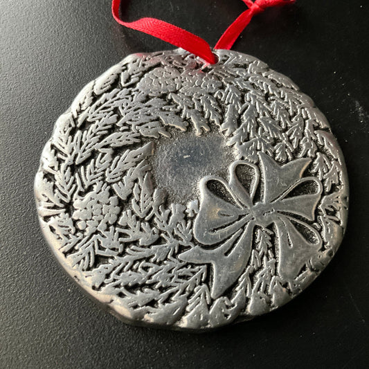 Wilton detailed cast aluminum Christmas wreath with bow ornament