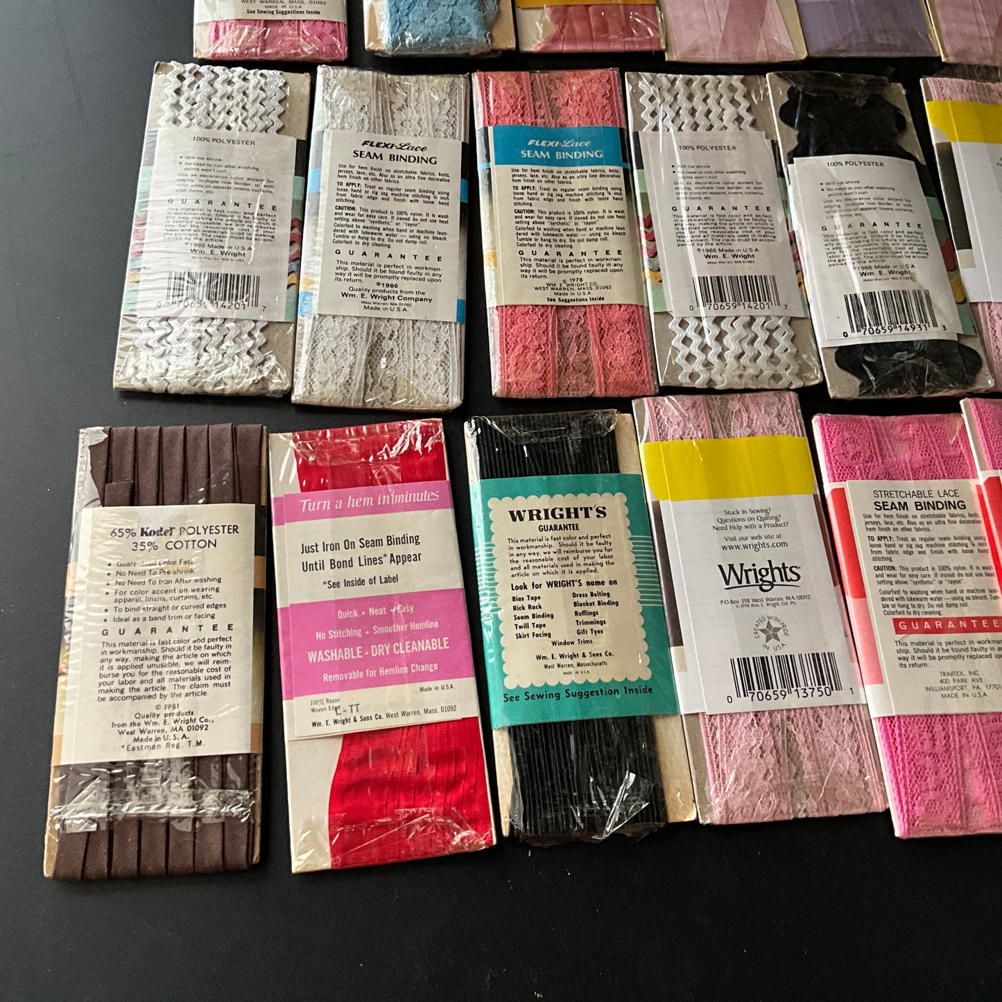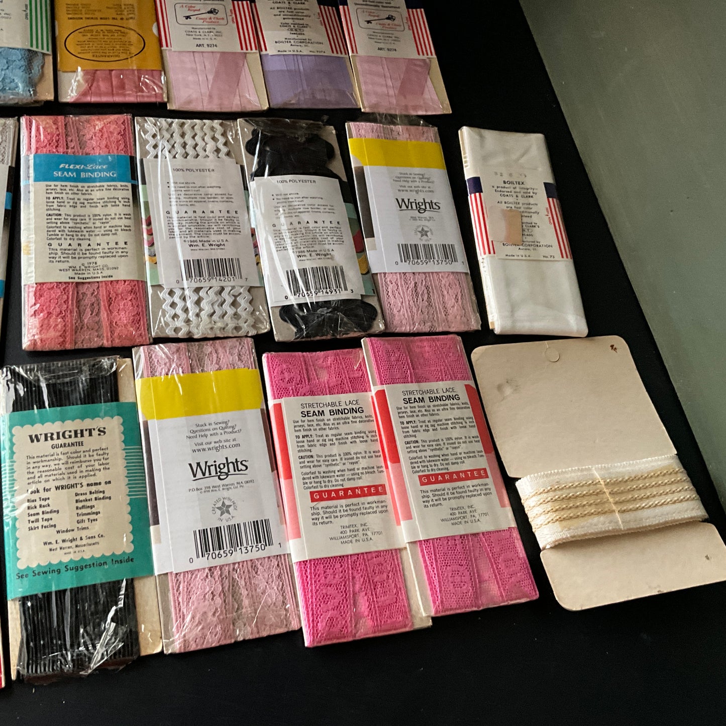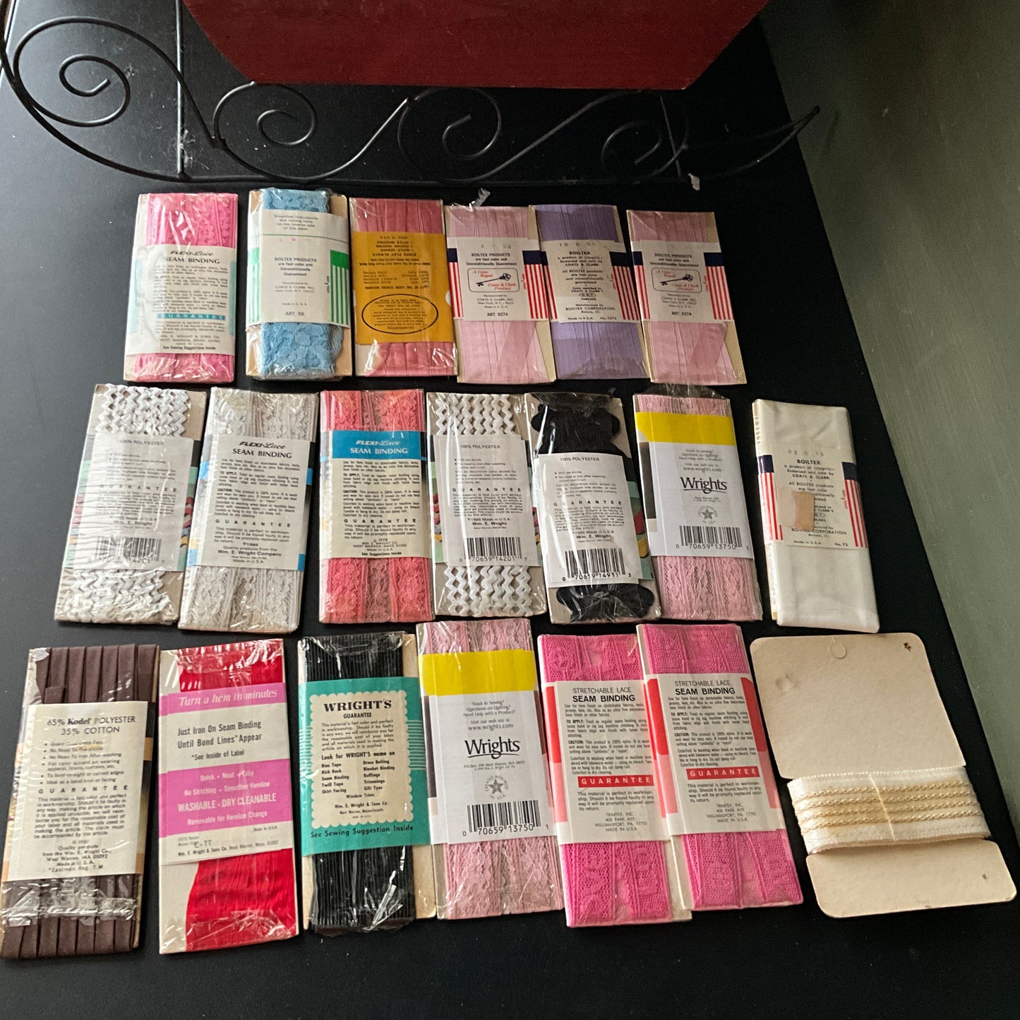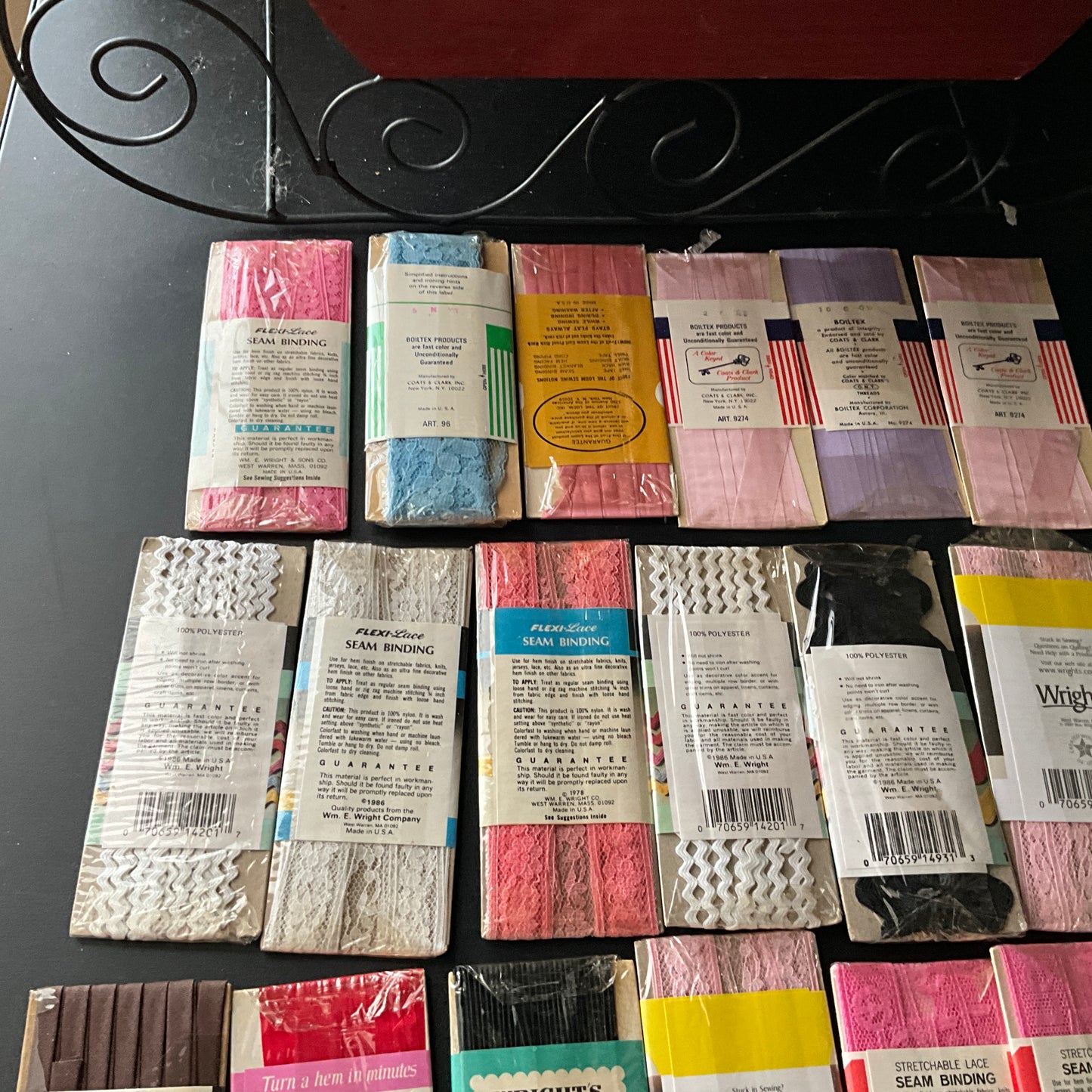 *seam binding, hem lace, rickrack, and hem facing