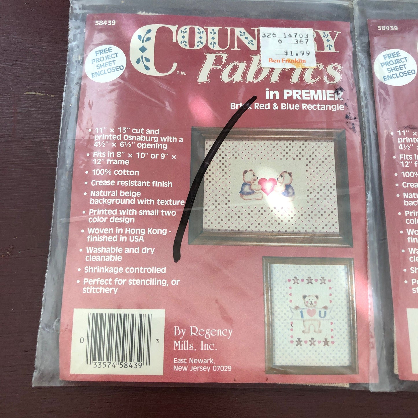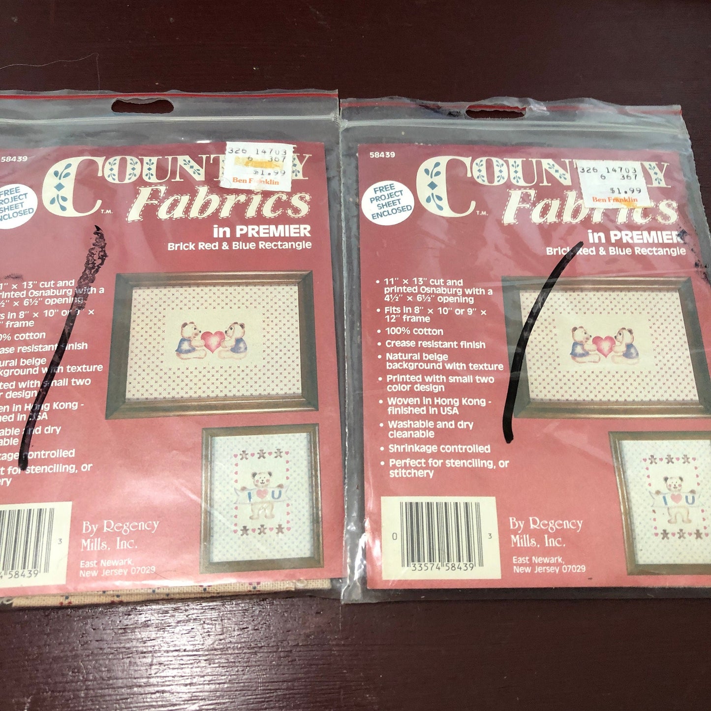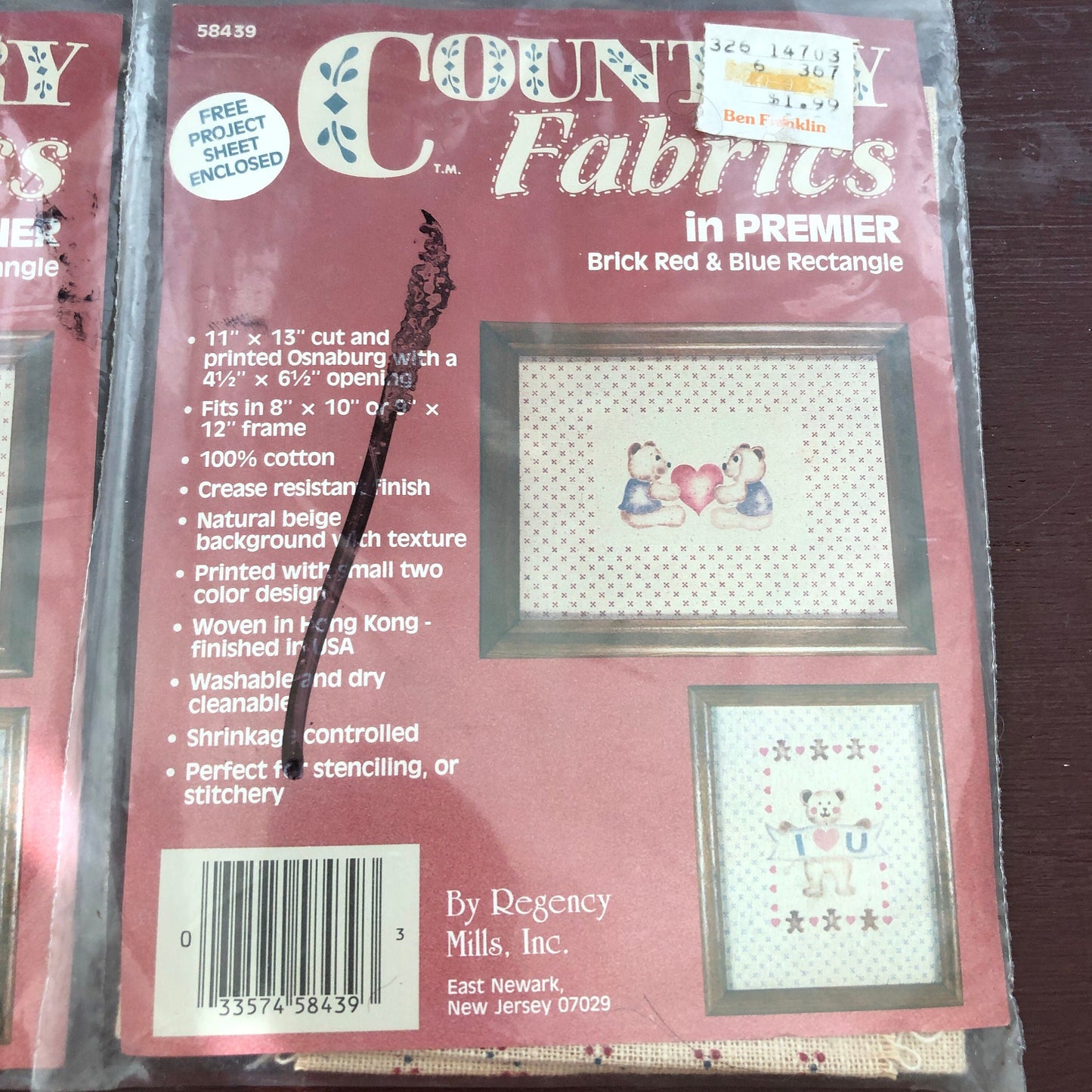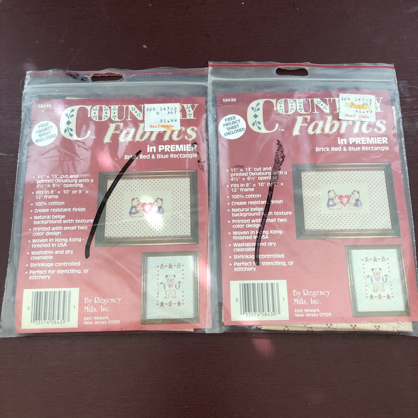 Country Fabrics in Premier, Set of 2, Brick Red & Blue Rectangle, by Regency Mills, 11 by 13 Inches, 4.5 by 6.5 Inch Stitch Area