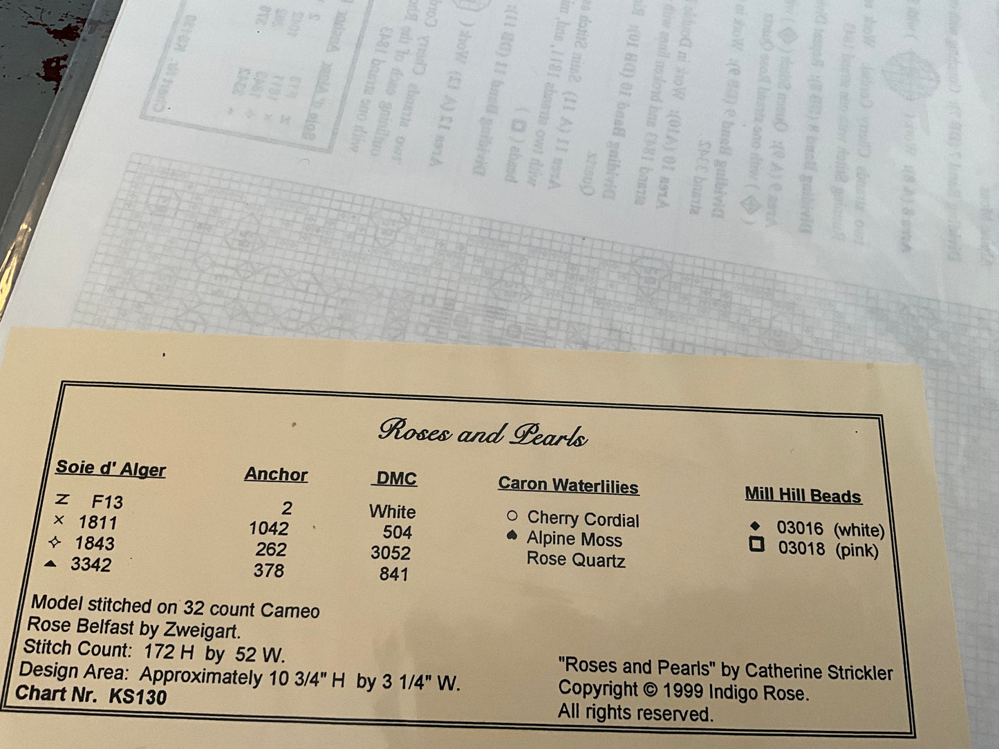 Indigo Rose Roses and Pearls counted cross stitch chart