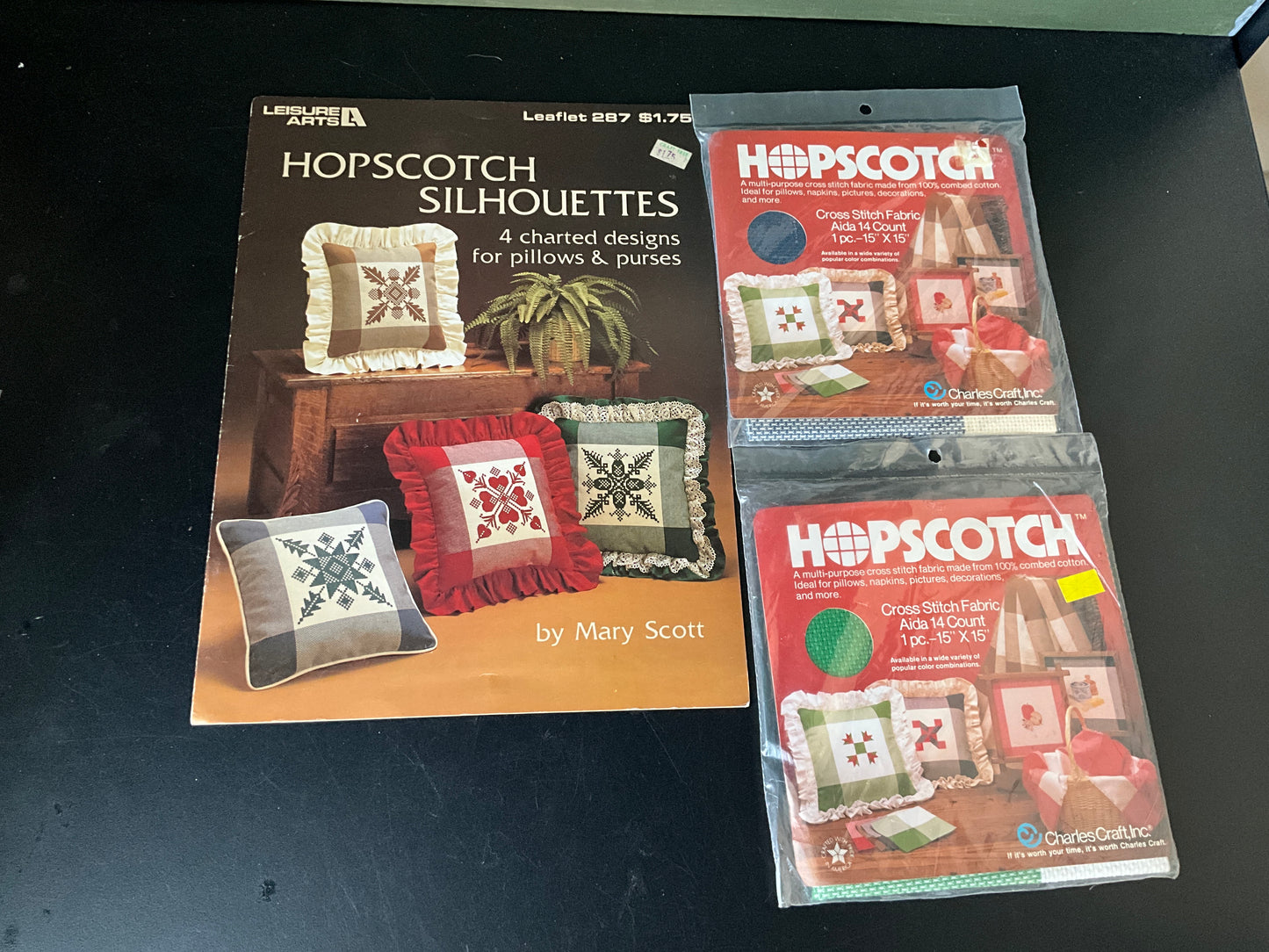 Leisure Arts Hopscotch Silhouettes Leaflet 287 cross stitch chart with 2 packs of Charles Craft Hopscotch fabric*
