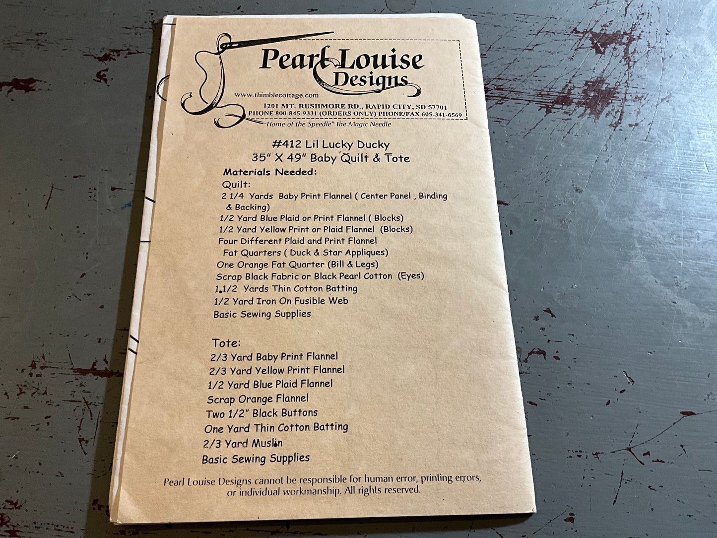 Pearl Louise Designs Lucky Duck #412 35 by 49 inch baby quilt & tote quilting pattern