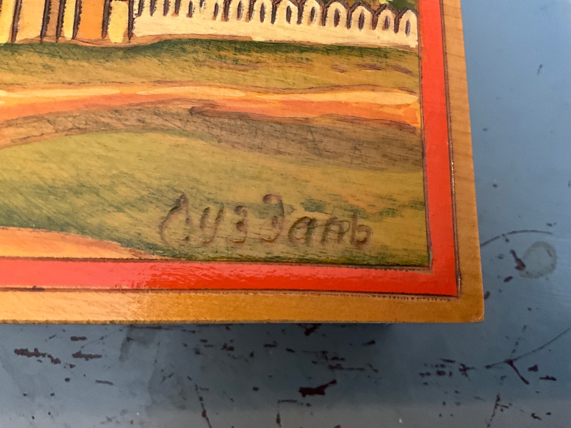 Russian blue domed church Cathedral hand painted embossed wooden trinket/jewelry box signed by artist