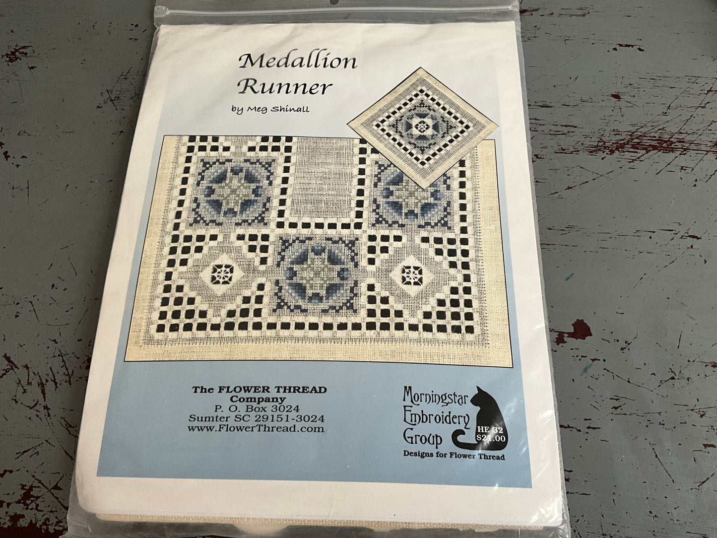 The Lower Thread Medallion Runner Morningstar Embroidery Group Hardinger kit w/ flower thread