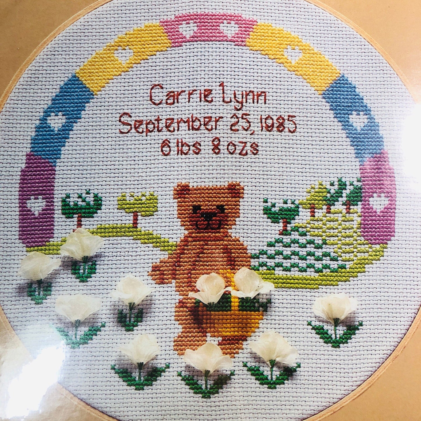 WonderArt, Baby Bear, Flowers in Bloom, Needlecraft, Vintage Counted Cross Stitch Kit
