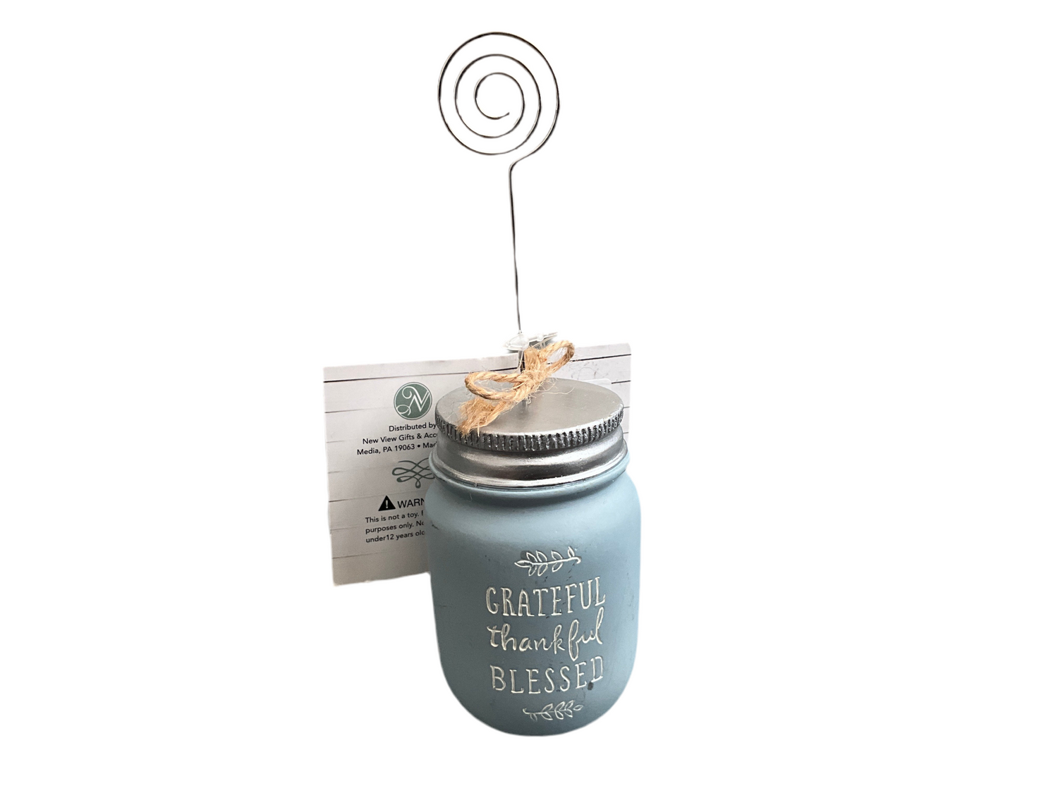 Grateful Thankful Blessed Clippie mason jar style decorative photo display