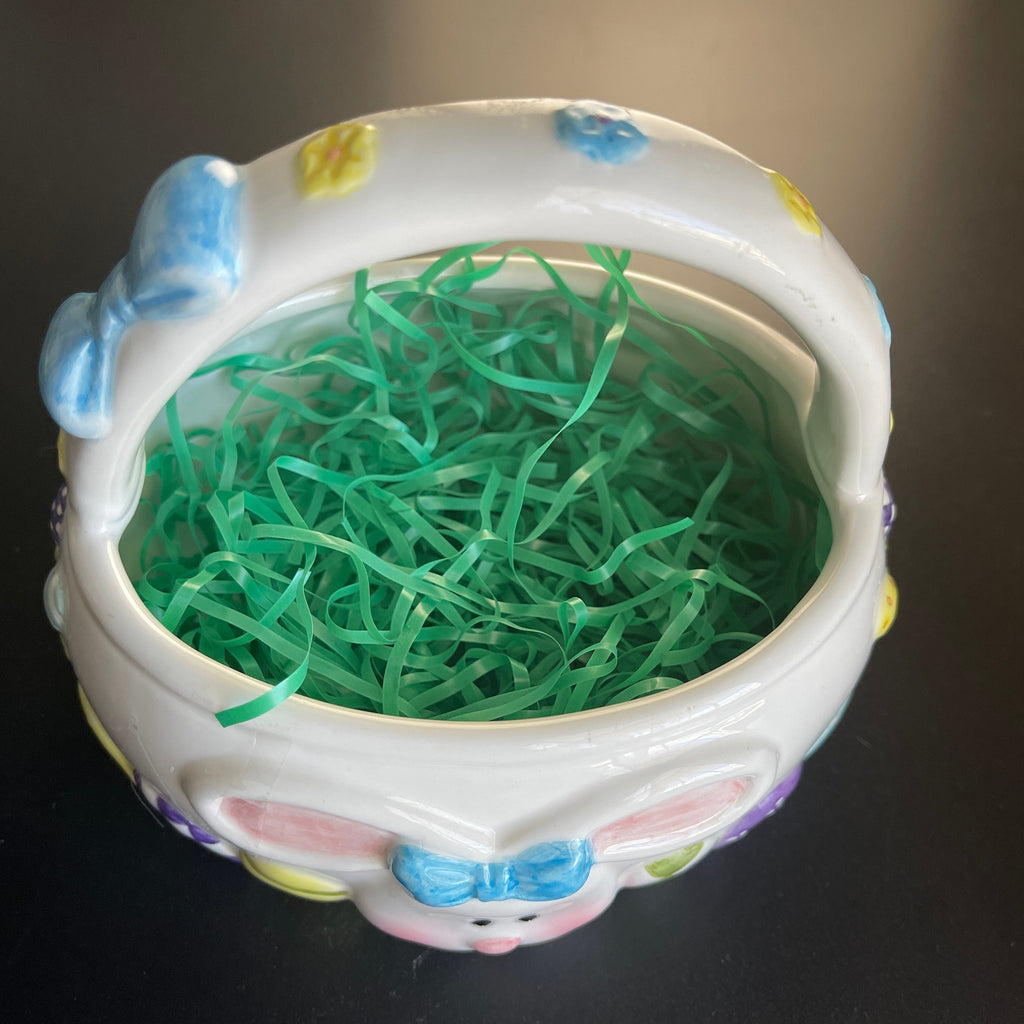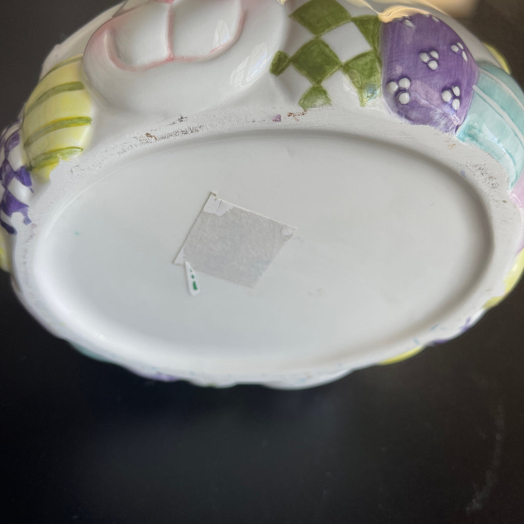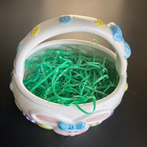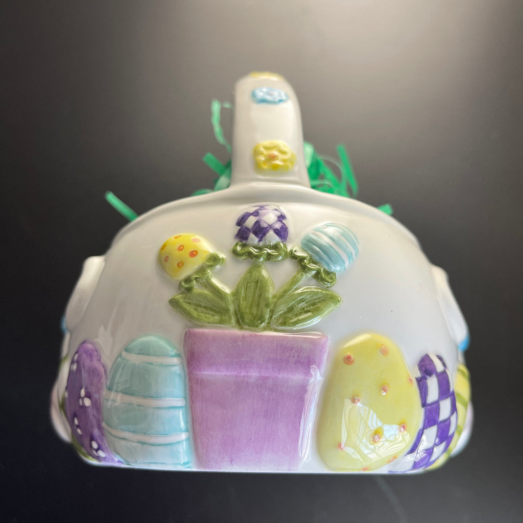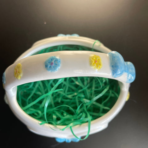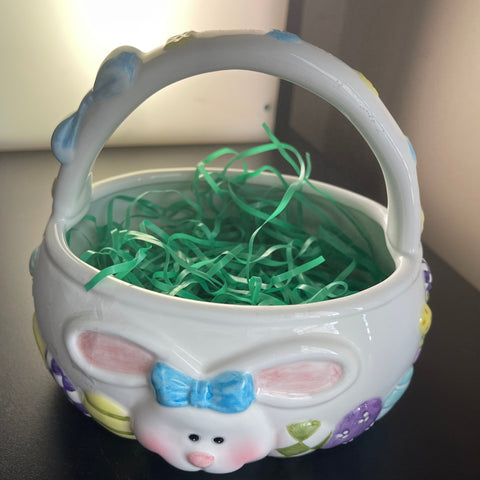 Beautiful Bunny Basket Vintage Porcelain Collectible Spring Decor 5 by 5.5 by 6 Inches (repaired handle)