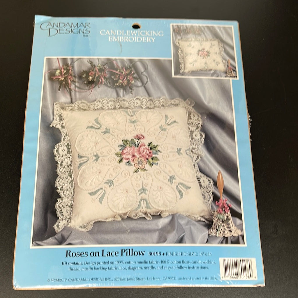 Candamar Designs Roses on Lace Pillow Vintage 1994 Candlewicking kit