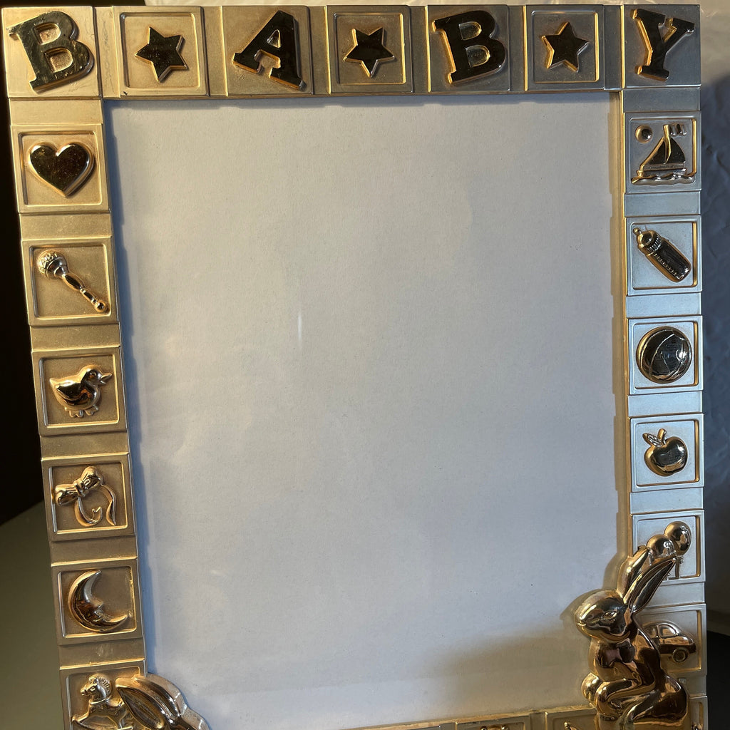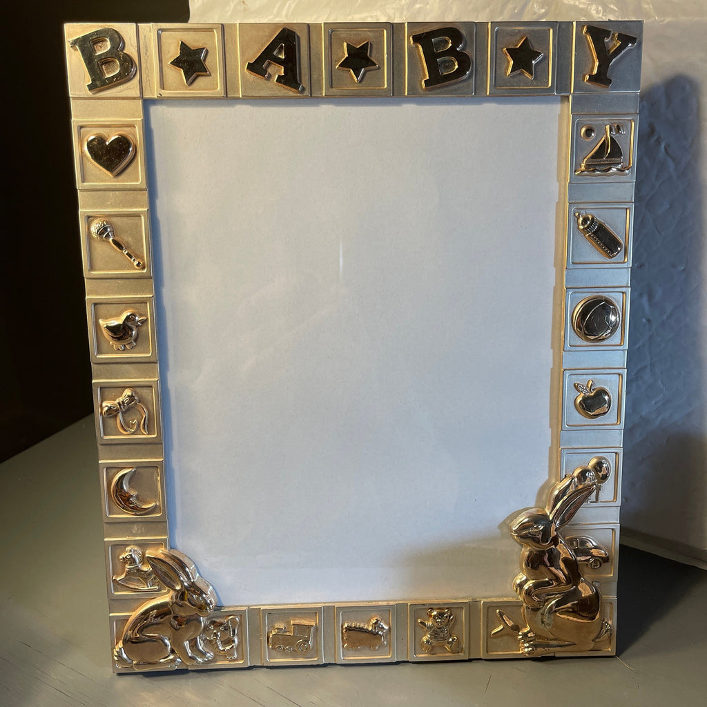 Green Tree Gallery BABY Gold Tone Rabbits and Toys Very Nice Picture Frame
