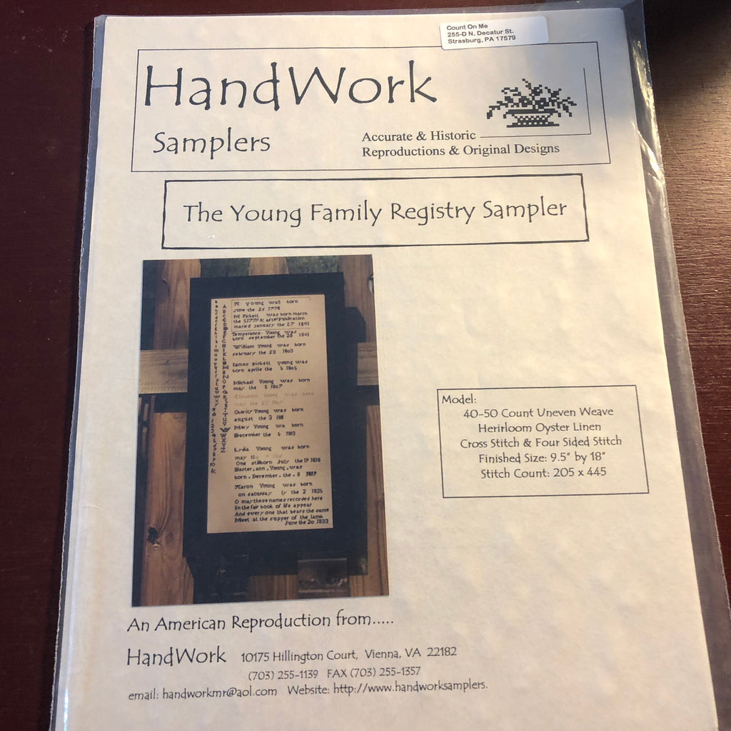 Hand Work Samplers, The Young Registry Sampler, Counted Cross Stitch Pattern