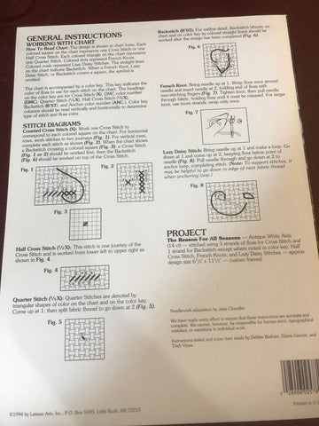 Leisure Arts, The Reason For All Seasons, Leaflet 2578, Vintage 1994, Stitch Count 96 by 162
