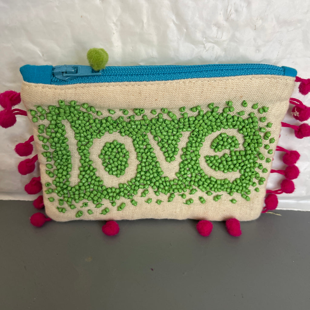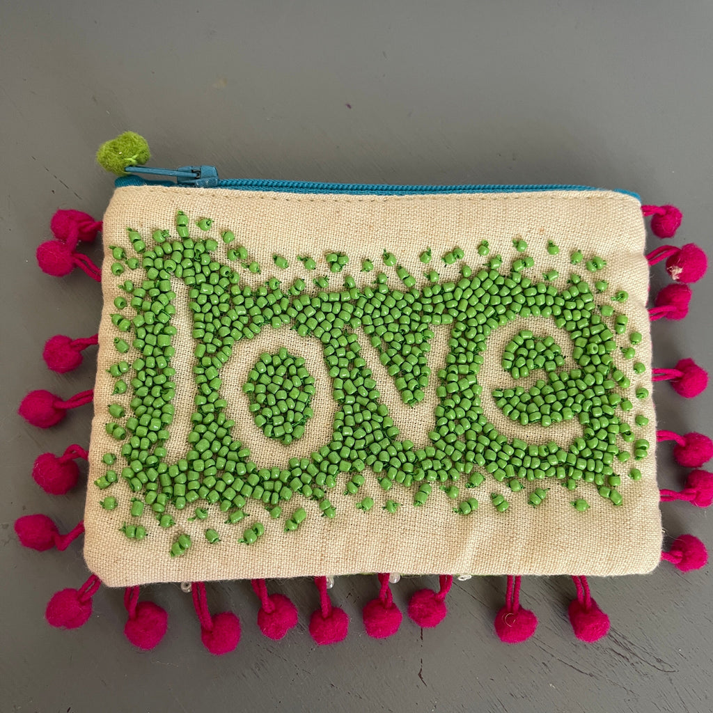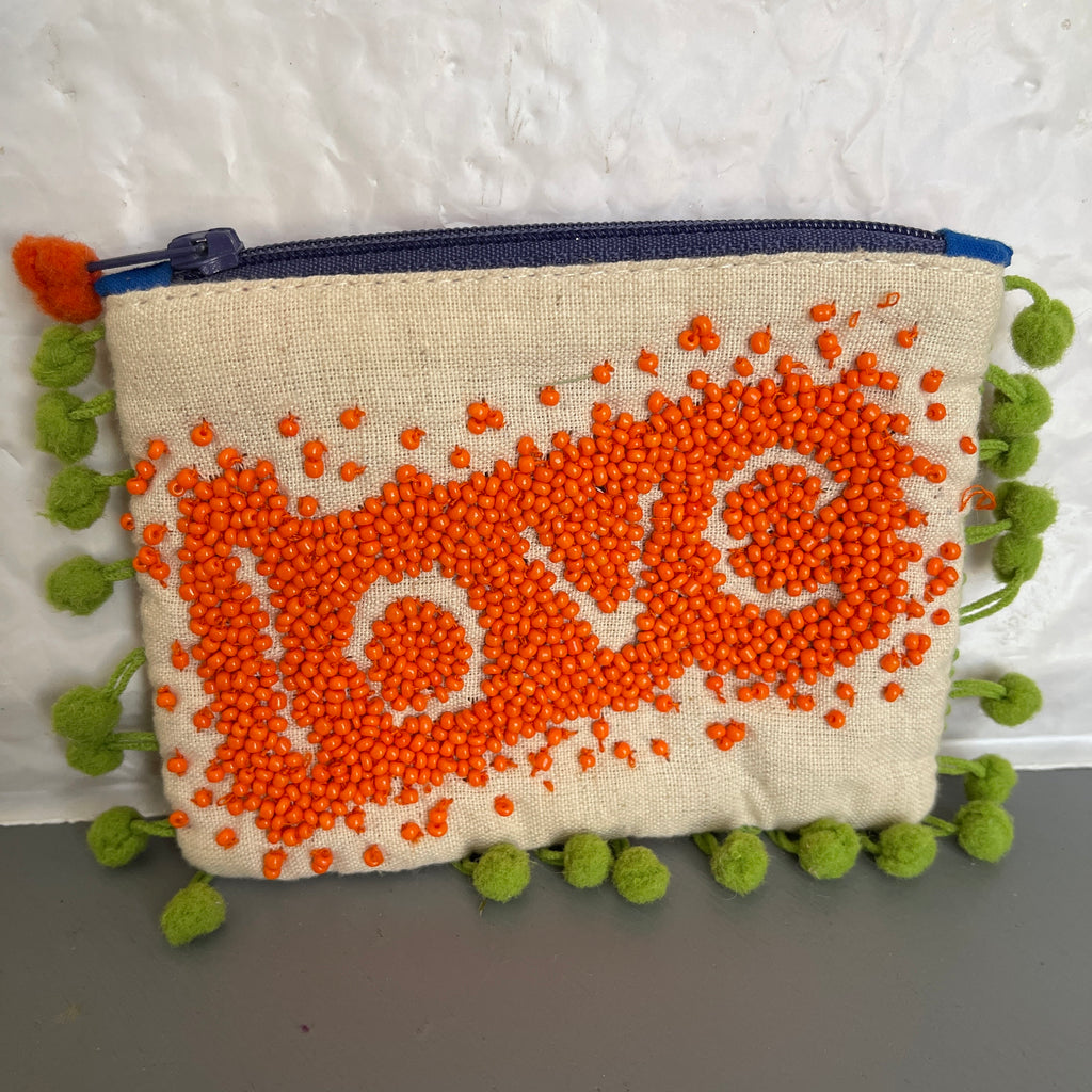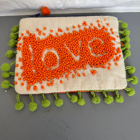 Love Beaded Coin Purse Choice Of Green or Orange Vintage Collectible See Variations*