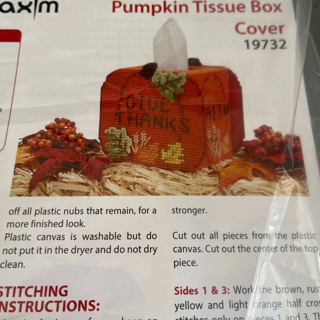 Mary Maxim Pumpkin Tissue Box Cover 19732 Vintage Plastic Canvas Kit