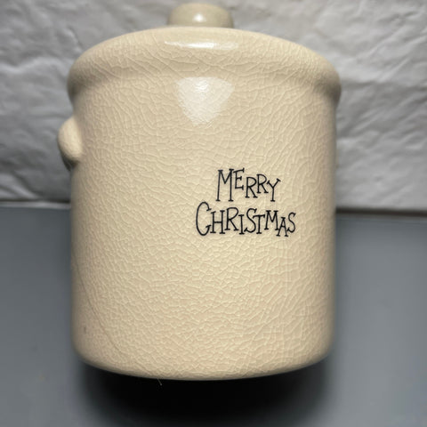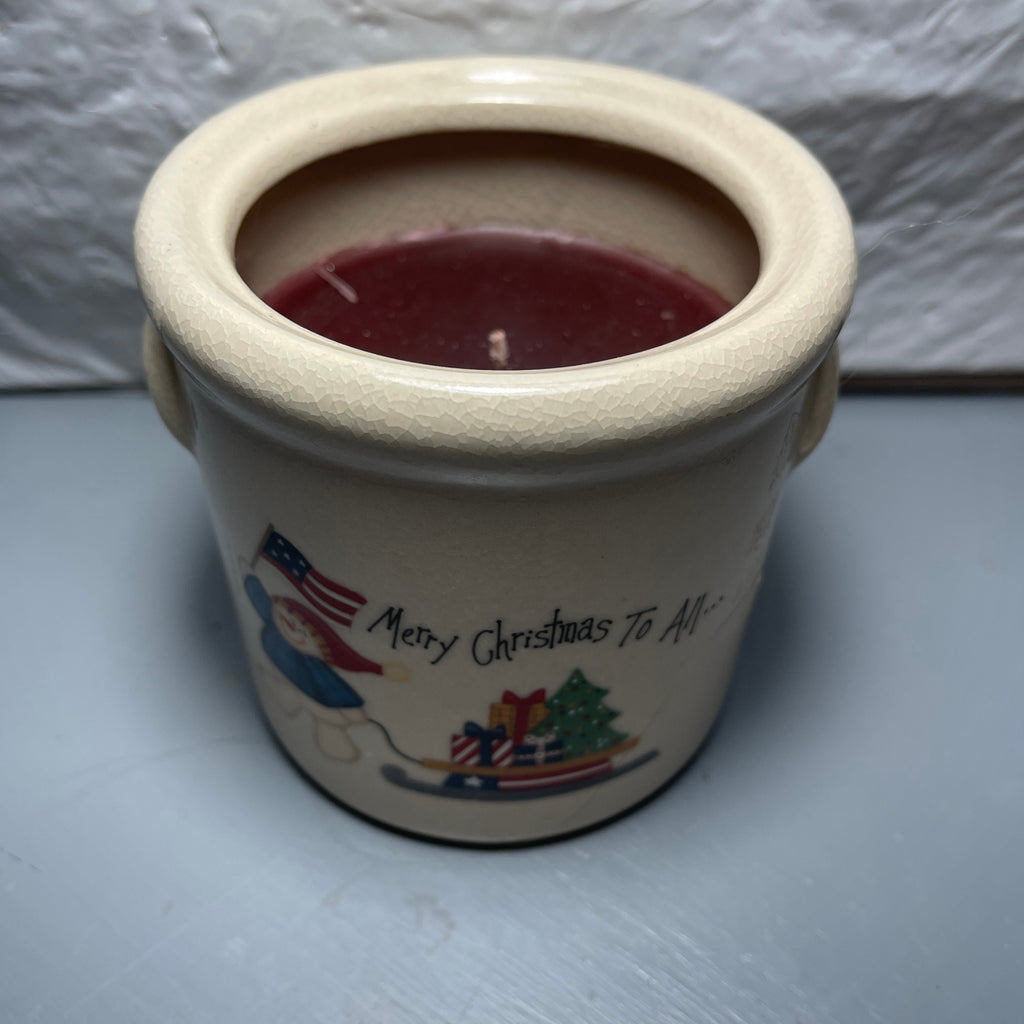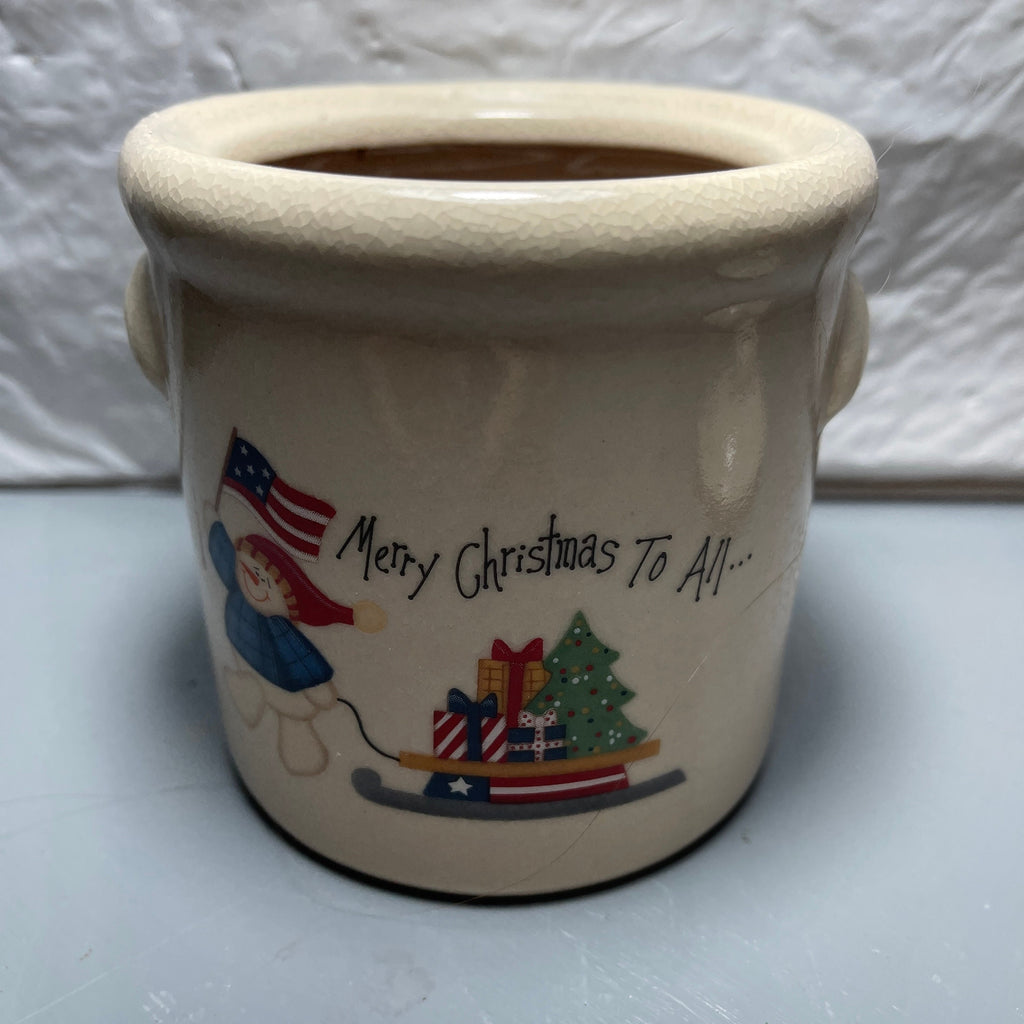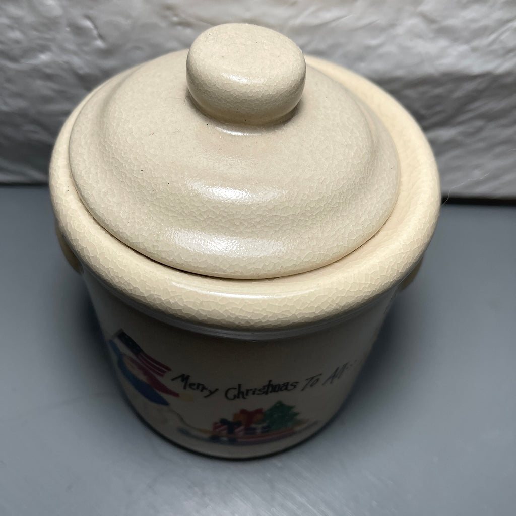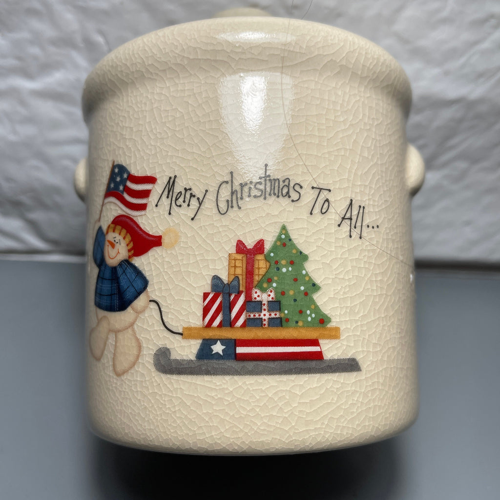 Merry Christmas To All Patriotic Snowman Vintage Candle Crock with Lid