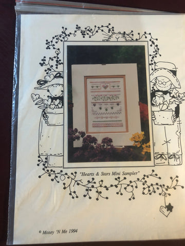 Mosey N' Me, Hearts & Stars Mini Sampler, Vintage 1994, Counted, Cross Stitch Pattern, Stitch Count, 104 by 152