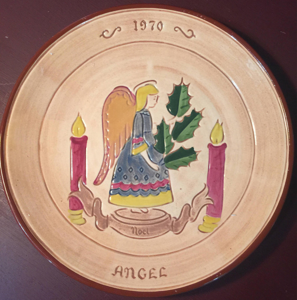Vintage 1970 Pennsbury Pottery Noel Angel collectible plate First Edition signed by artist A.R. hand painted with plate hanger bracket