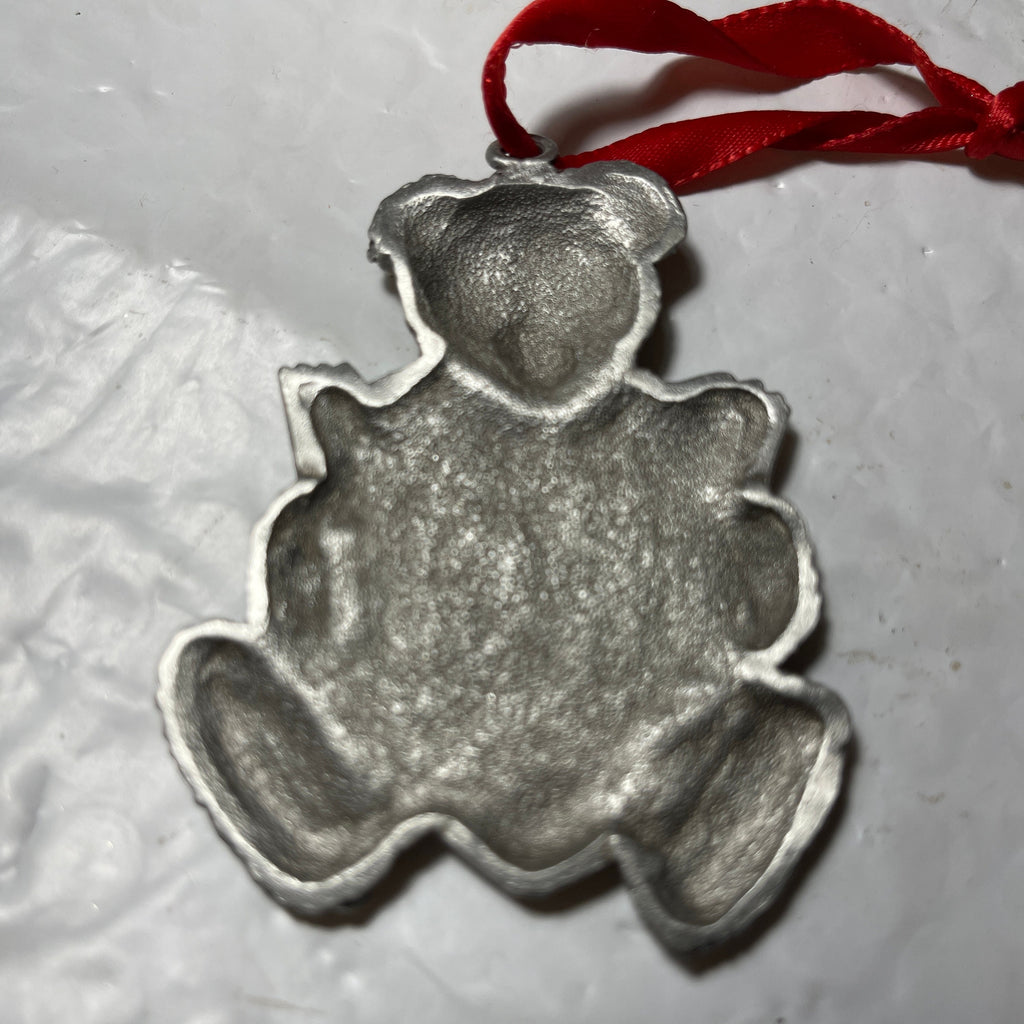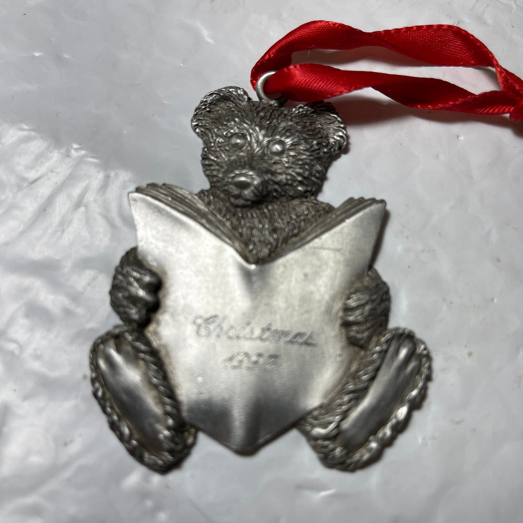 Pewter Teddy Bear Reading A Book Engraved Christmas 1997 Ornament