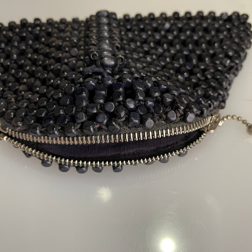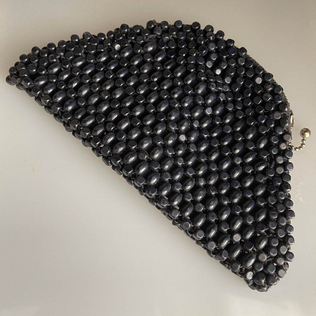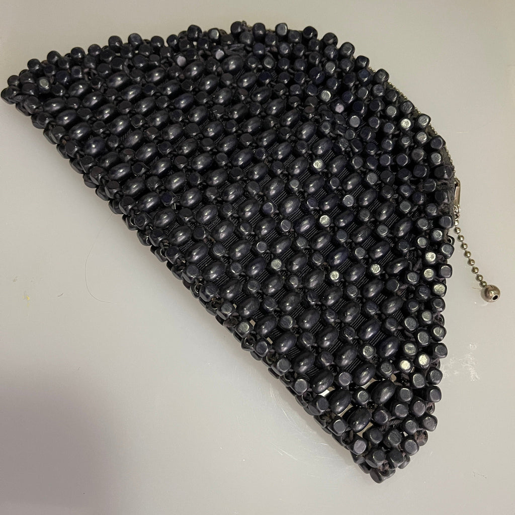 Posh pearly black beaded clutch purse with loop vintage collectible fashion accessory
