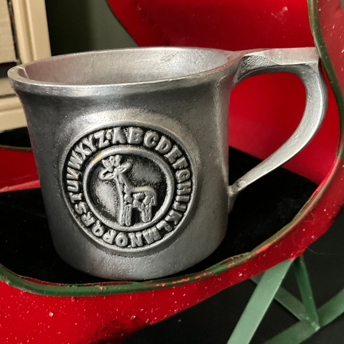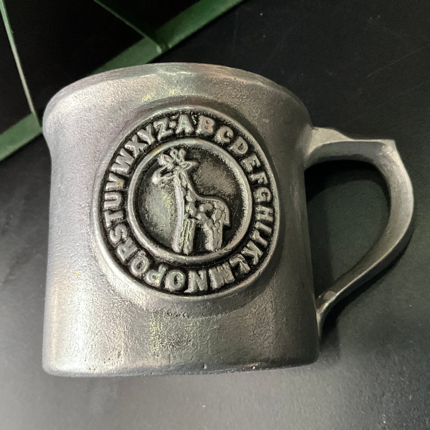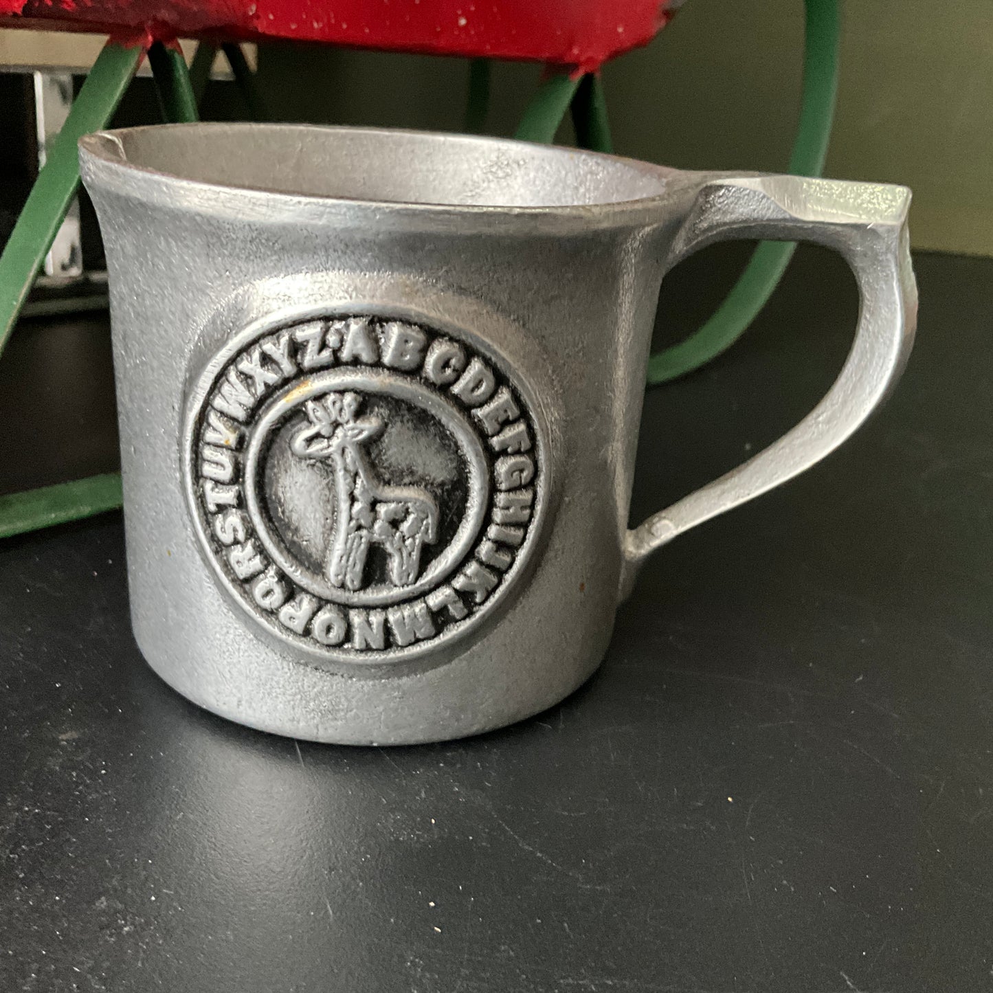Precious pewter Giraffe with Alphabet baby mug vintage collectible