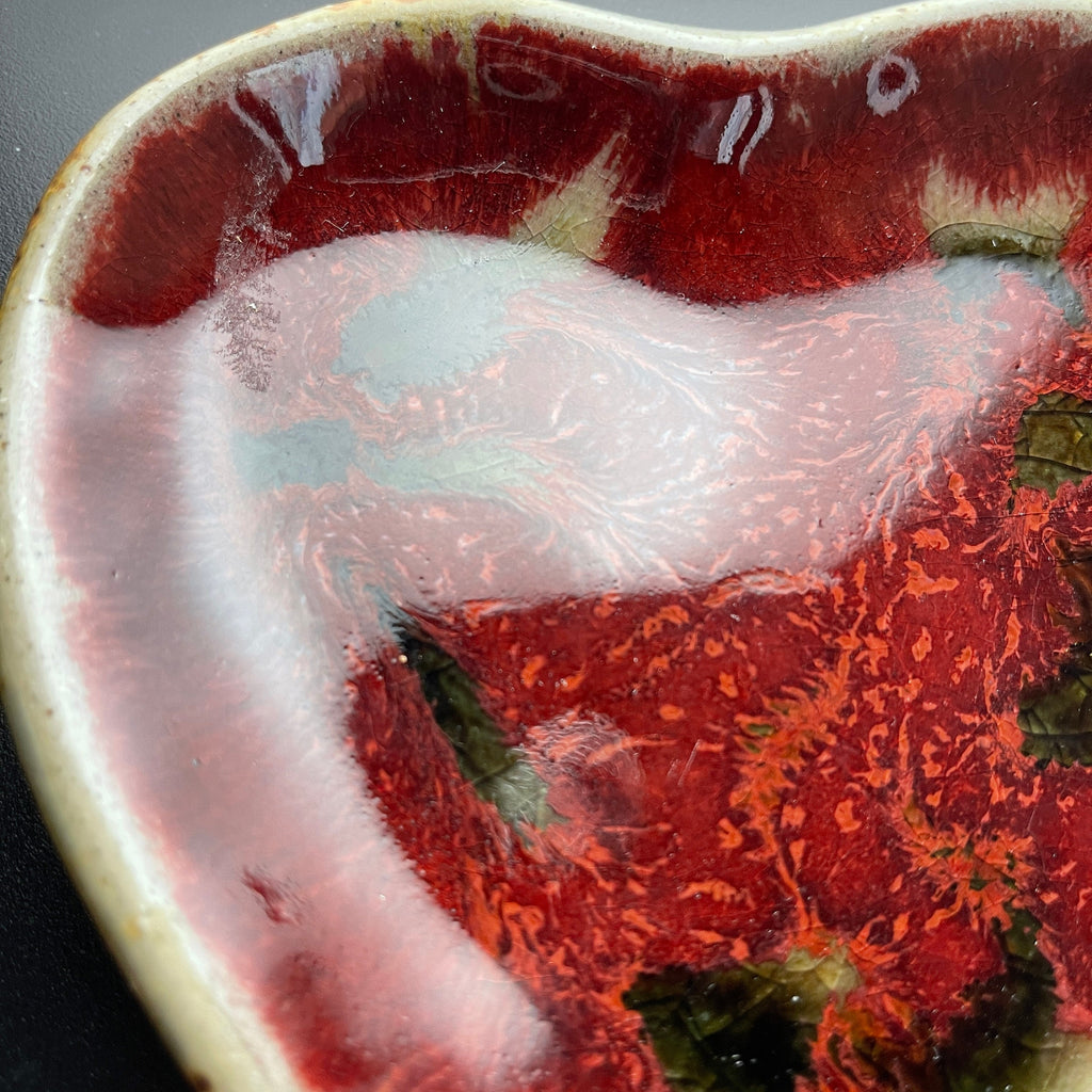 Stoneware Heat Shaped Trinket Dish Vintage Collectible Colonial Decor