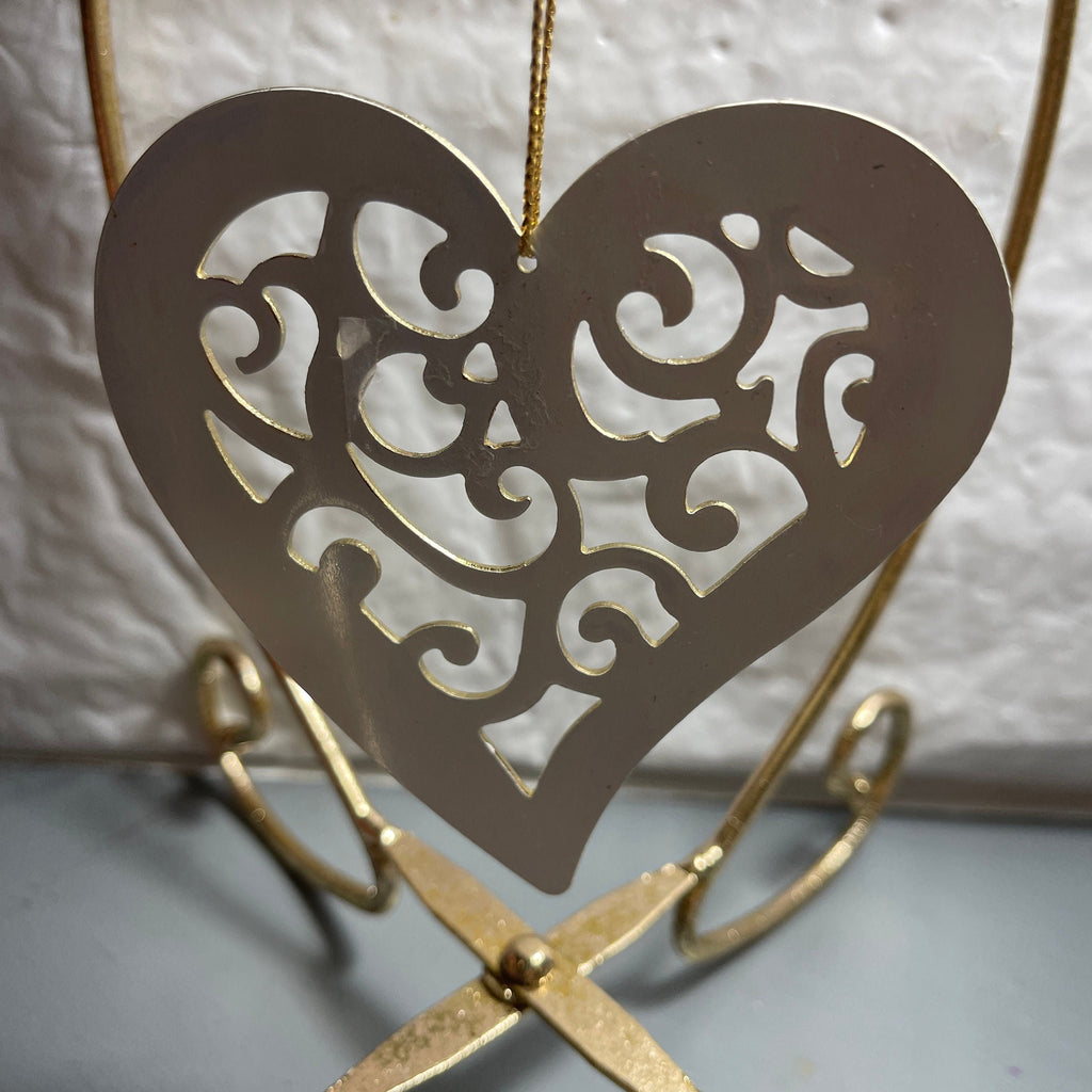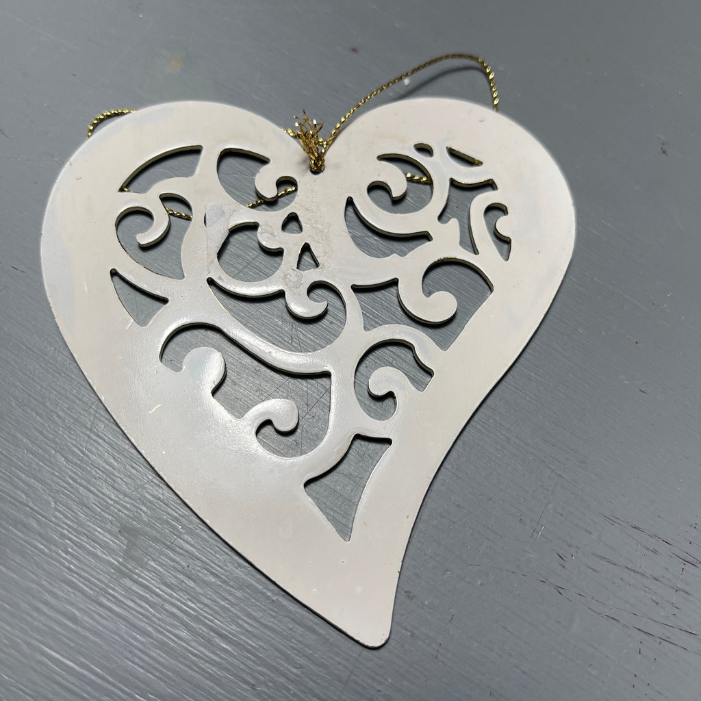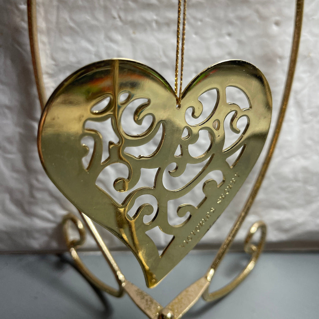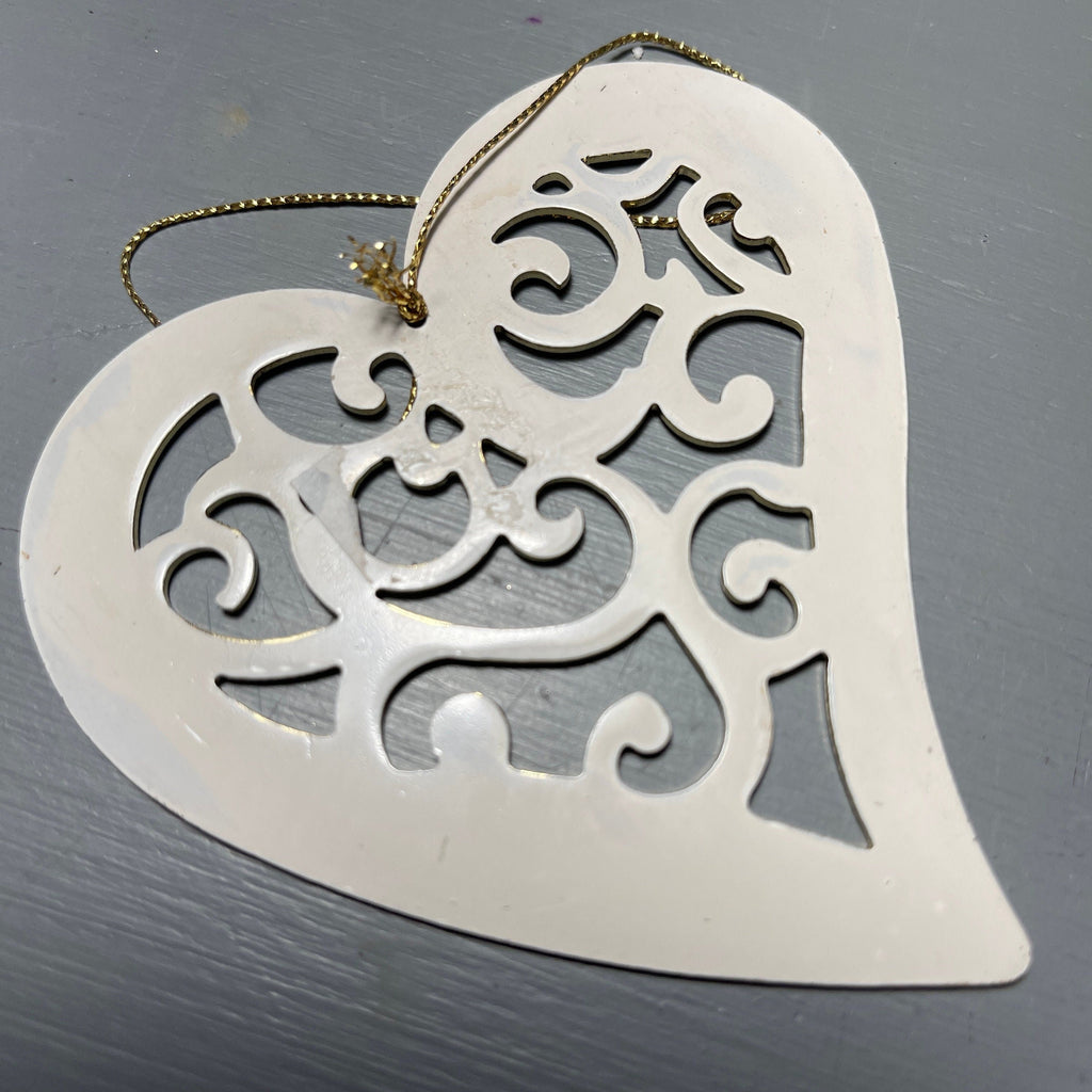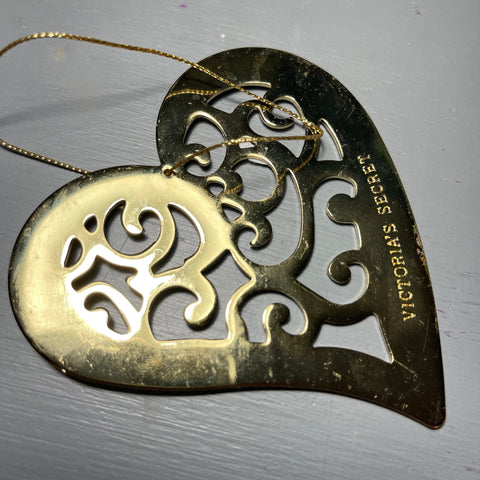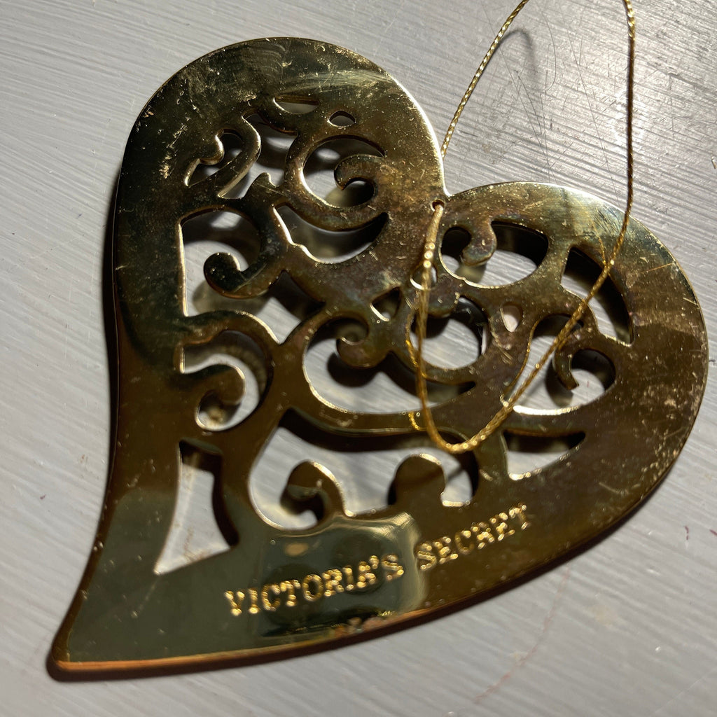 Victorias Secret Heart Shaped White and Gold-tone Metal Christmas Tree Ornament
