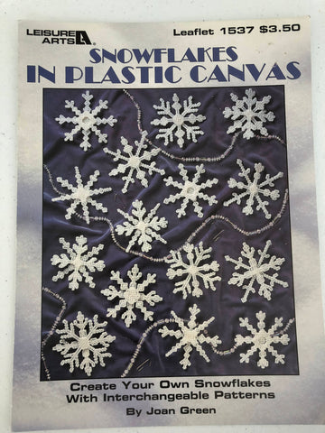 Leisure Arts, Snowflakes in Plastic Canvas, by Joan Green, Create Your Own Snowflakes Leaflet 1537. Vintage 1994