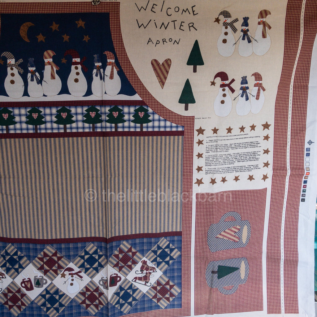 Welcome Winter Snowman Apron Vintage Christmas Fabric Panel
