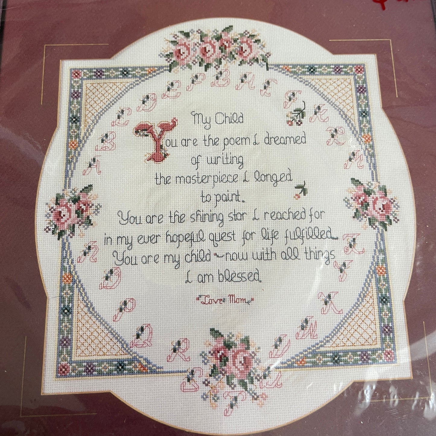 Bucilla My Child Vintage 1993 Counted Cross Stitch Kit 15 By 15 Inches Stitched On 14 Count Ivory AIDA