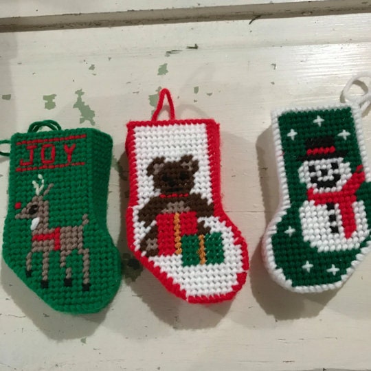 Christmas Stockings set of 3 vintage hand crafted 3D fully finished plastic canvas ornaments