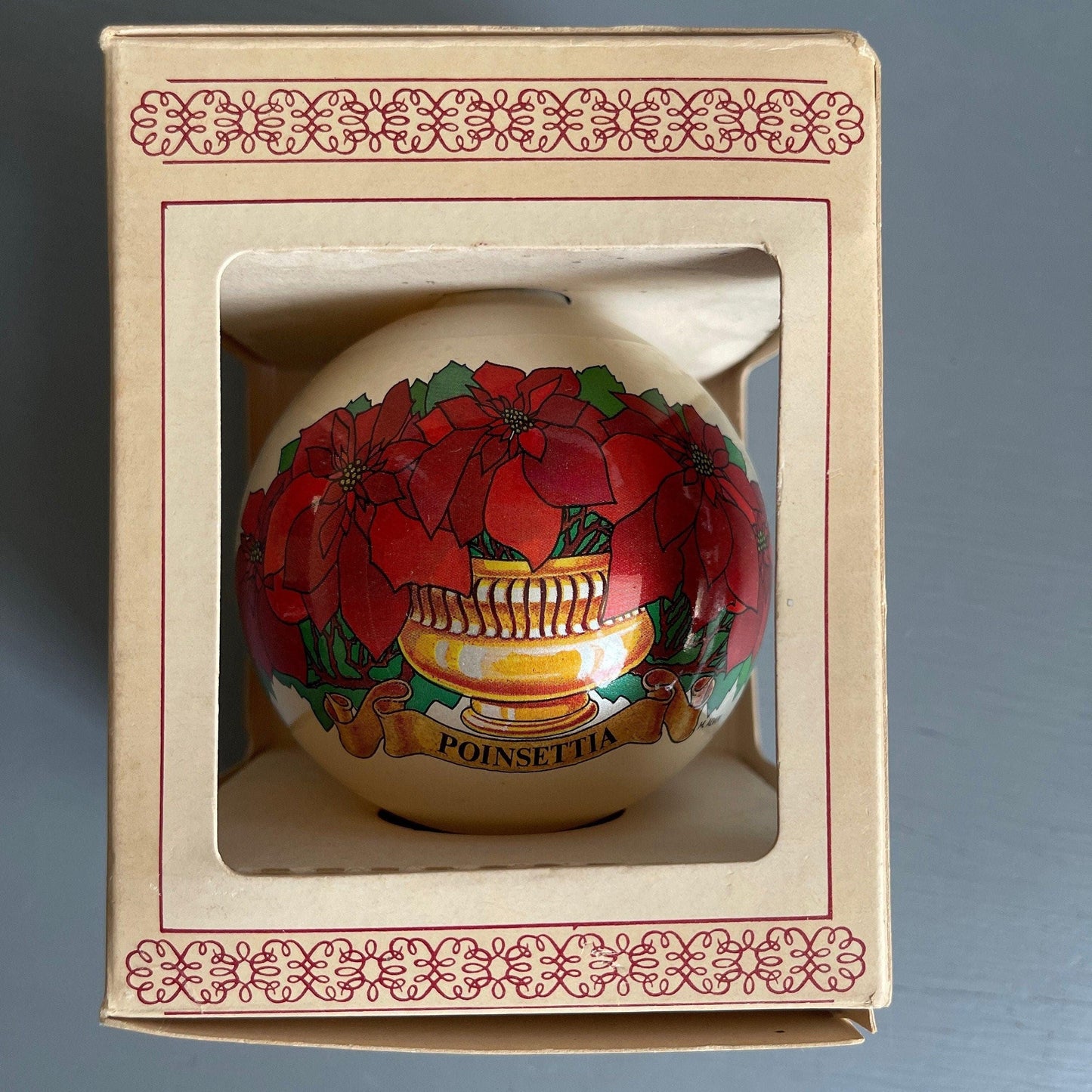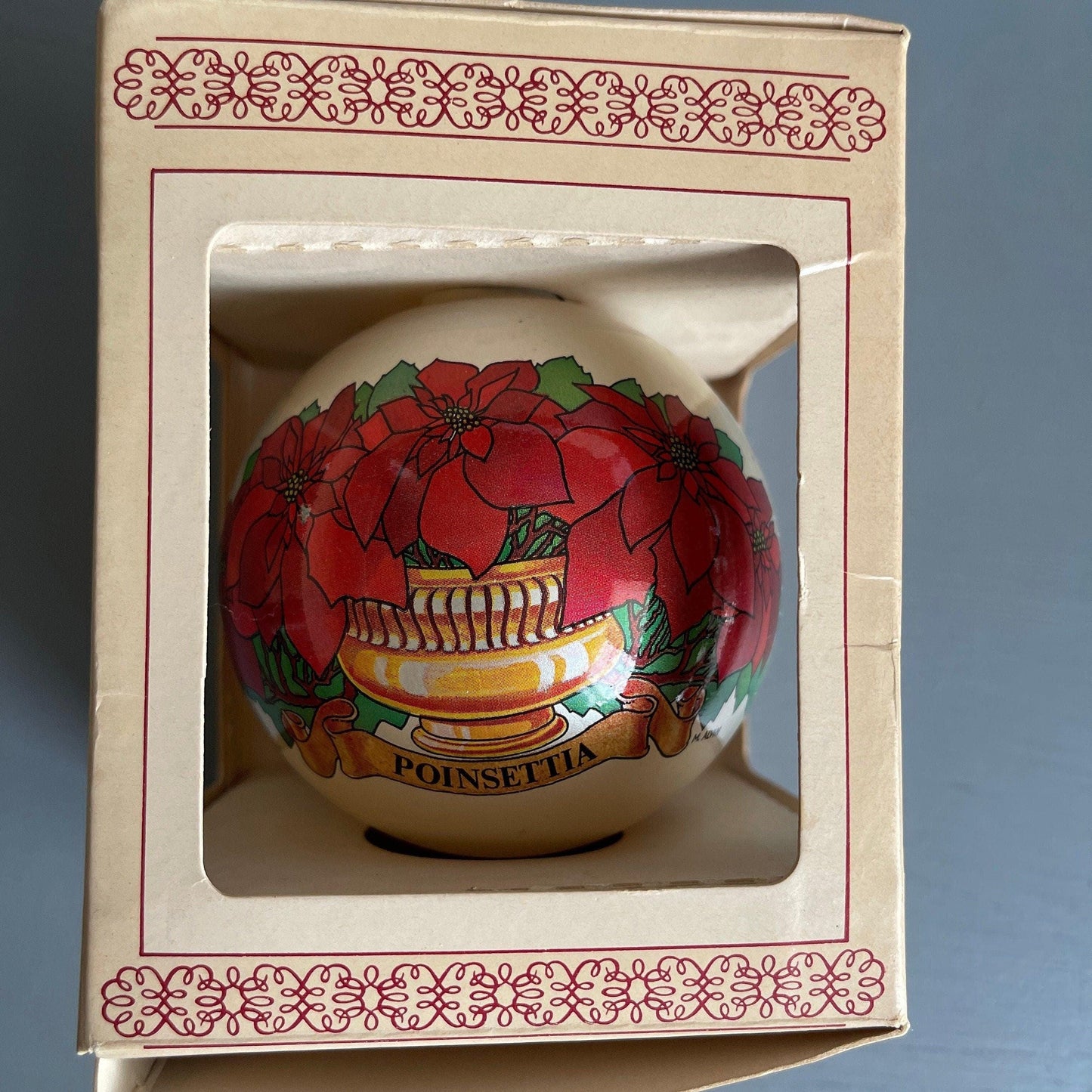 Essex Franke Poinsettia Collectors Series Vintage Glass Ball Christmas Ornament