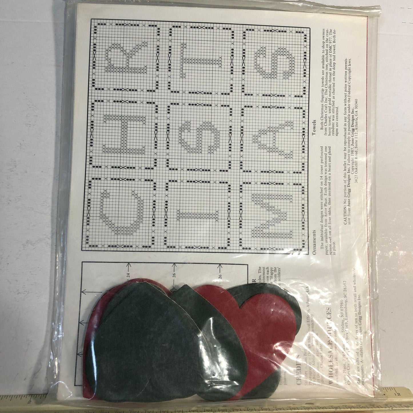 June Grigg, I Love Christmas, 21, Vintage 1987, Counted Cross Stitch Chart, Heart Cut Outs Included