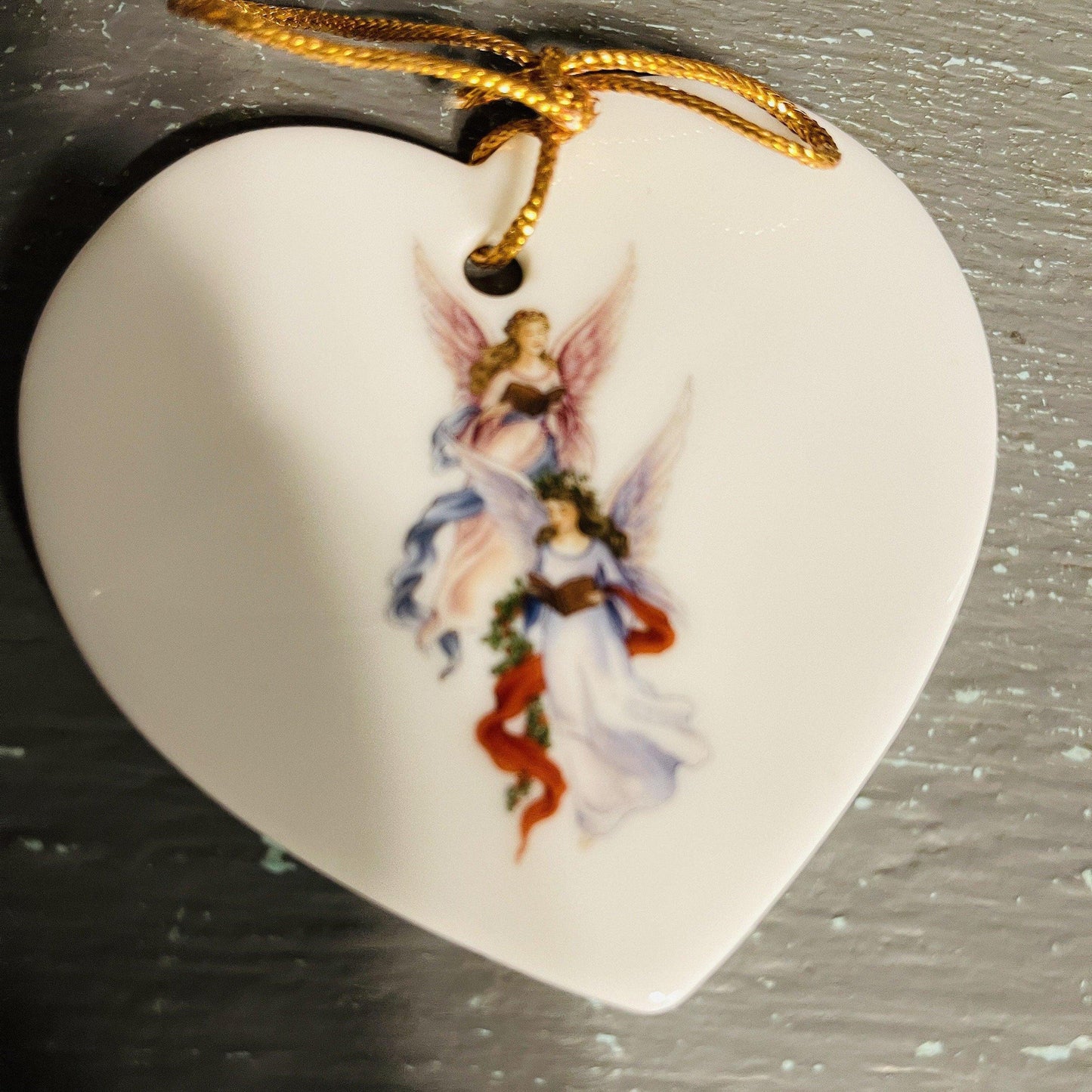 Pair of Angels On Porcelain Heart Shaped Ornament