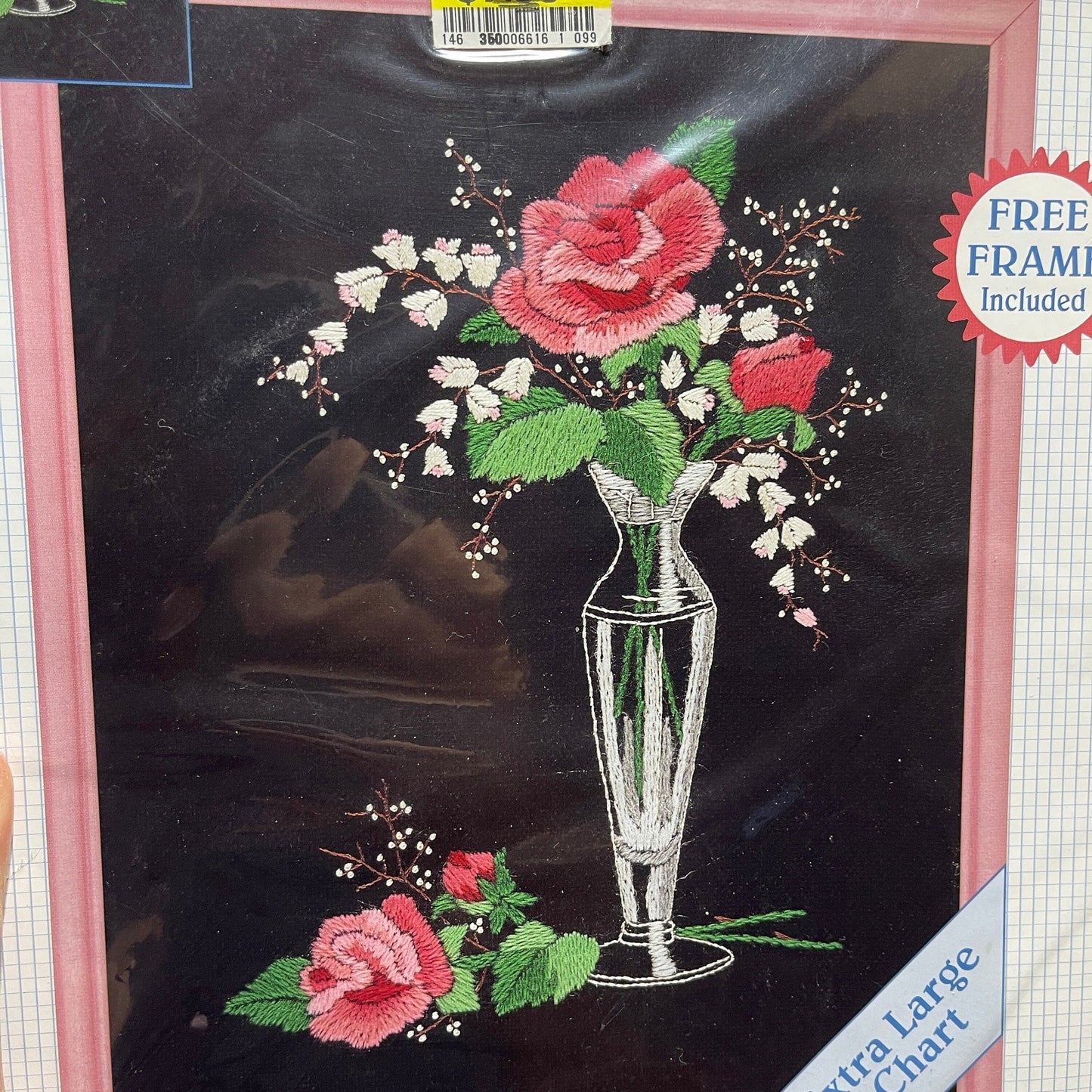 Stitchables Rose Perfection Vintage 1993 Embroidery Kit with Frame