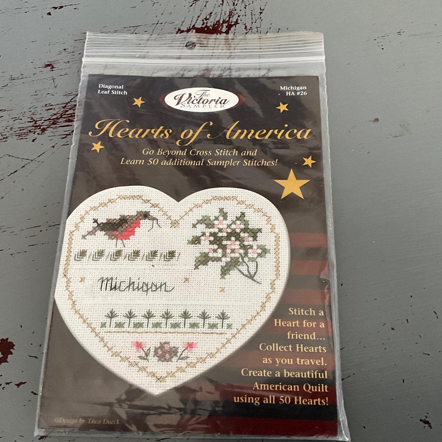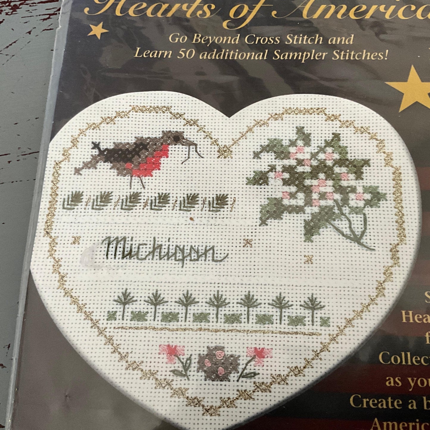 The Victoria Sampler Hearts Of America Michigan counted cross stitch kit