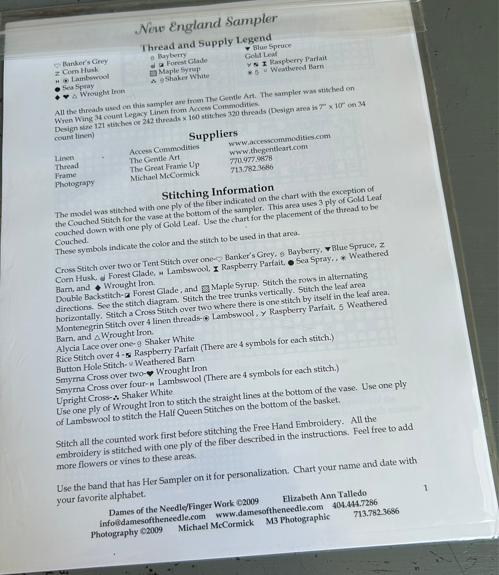 Dames of the needle New England Sampler cross stitch chart