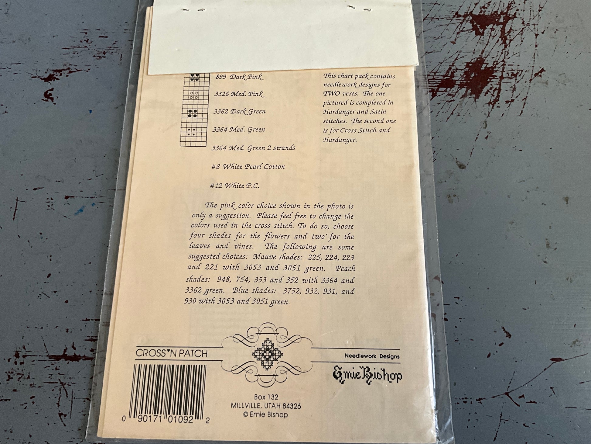Cross N’ Patch beautiful cross stitch pattern for vest