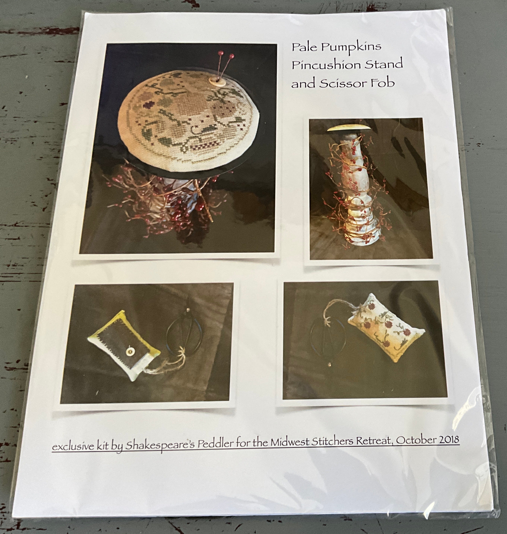 Shakespeare’s Peddler Pale Pumpkins and Scissors Pincushion Stand and Scissor Fob 2018 cross stitch Kit