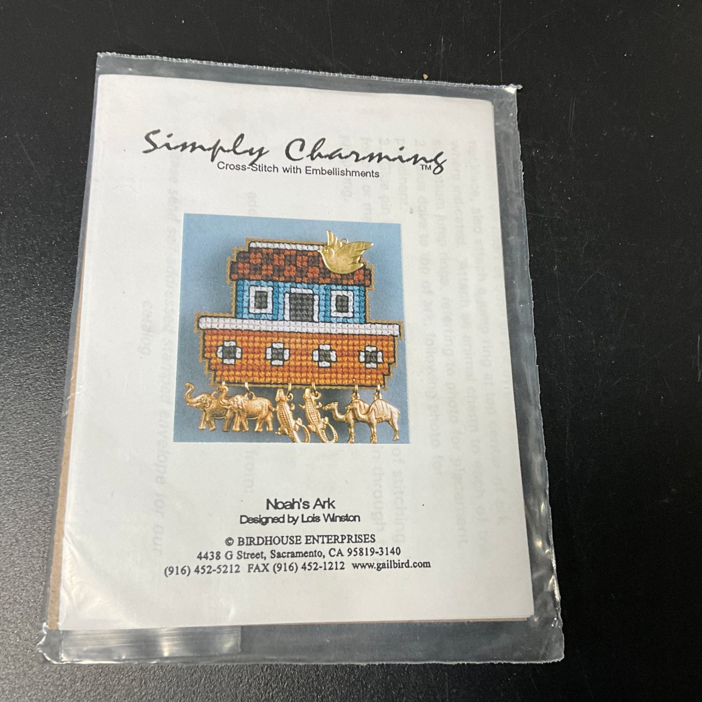 Simply Charming Noah's Ark counted cross stitch kit includes plastic canvas and charms