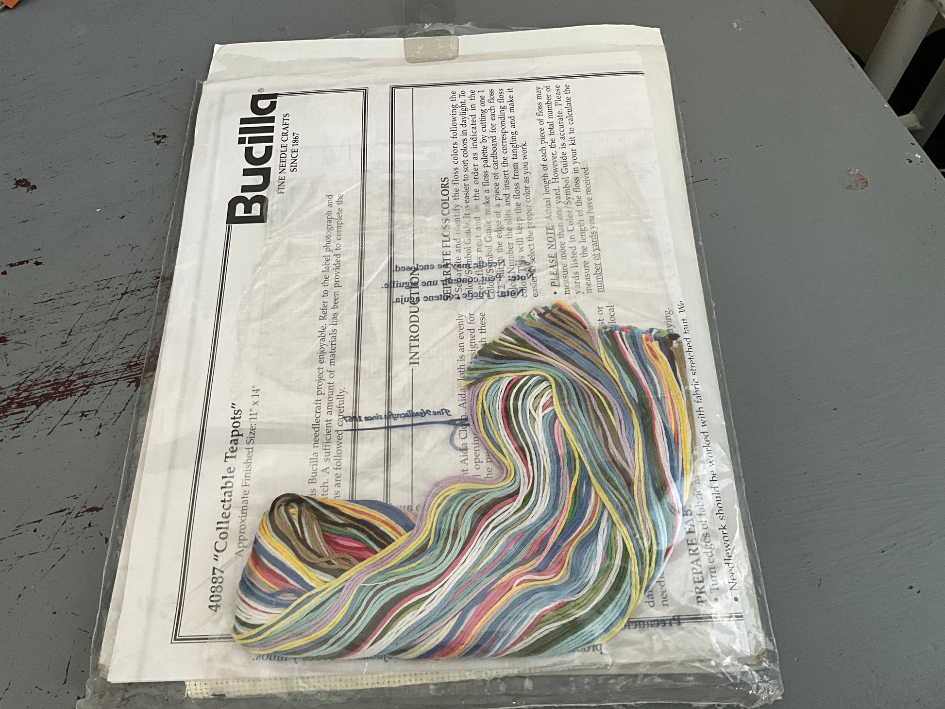 Bucilla Collectible Teapots 40887 cross stitch kit on 14 count AIDA