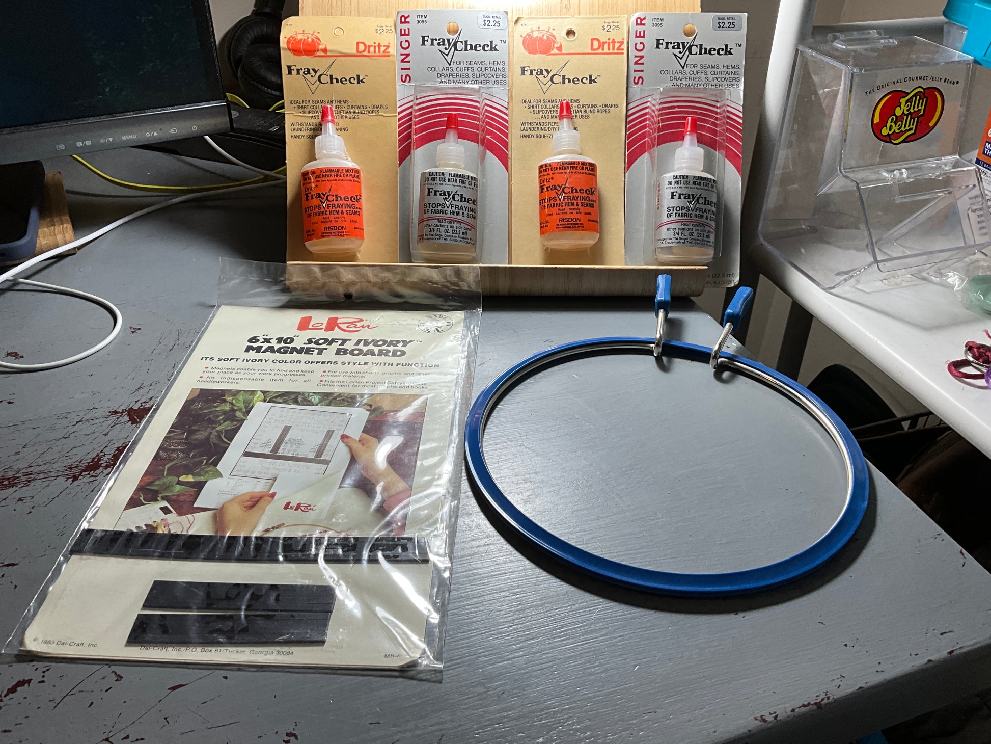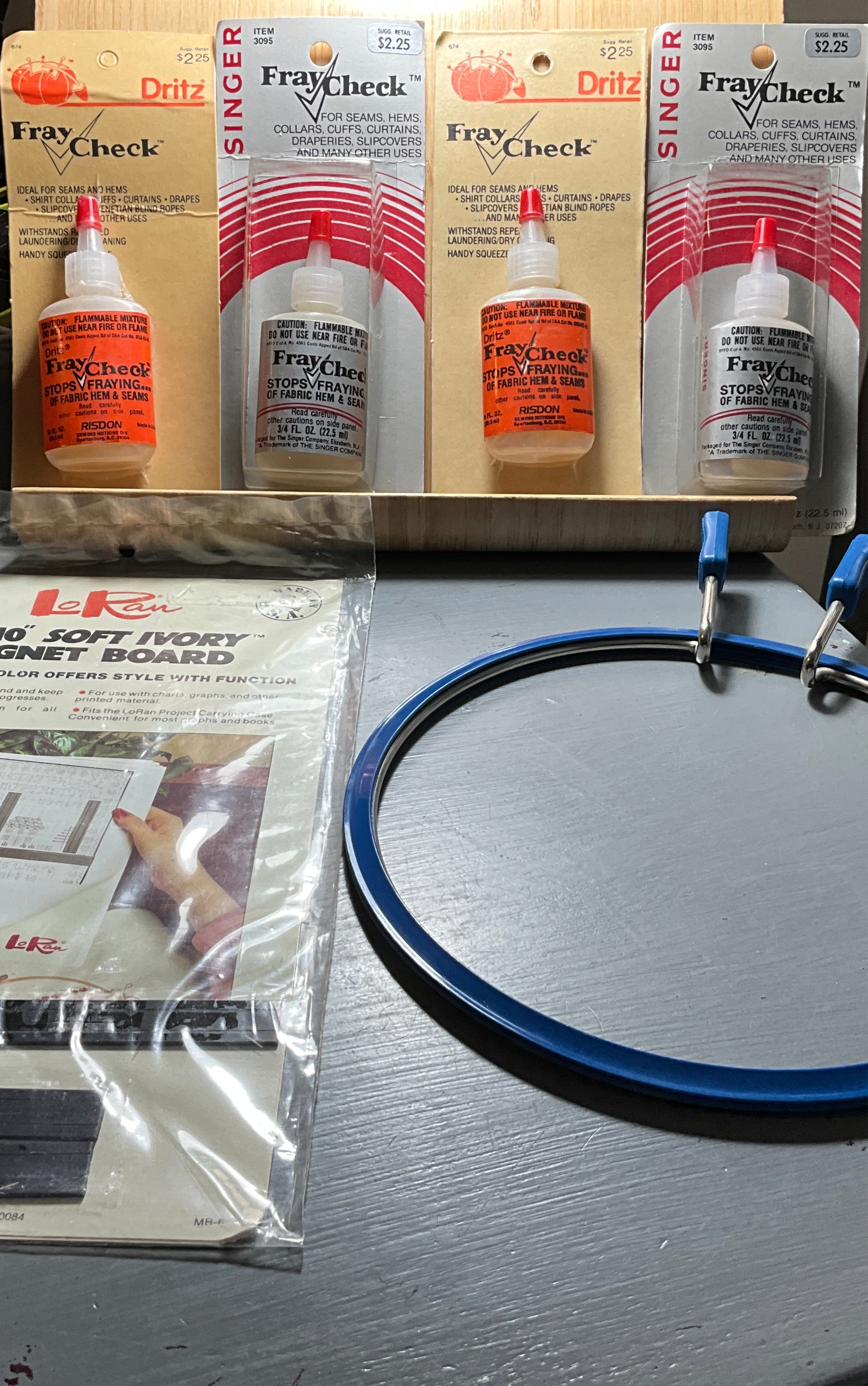 Magnetic board 6x10 inches, 4 bottles fray check, and Spring hoop 7”