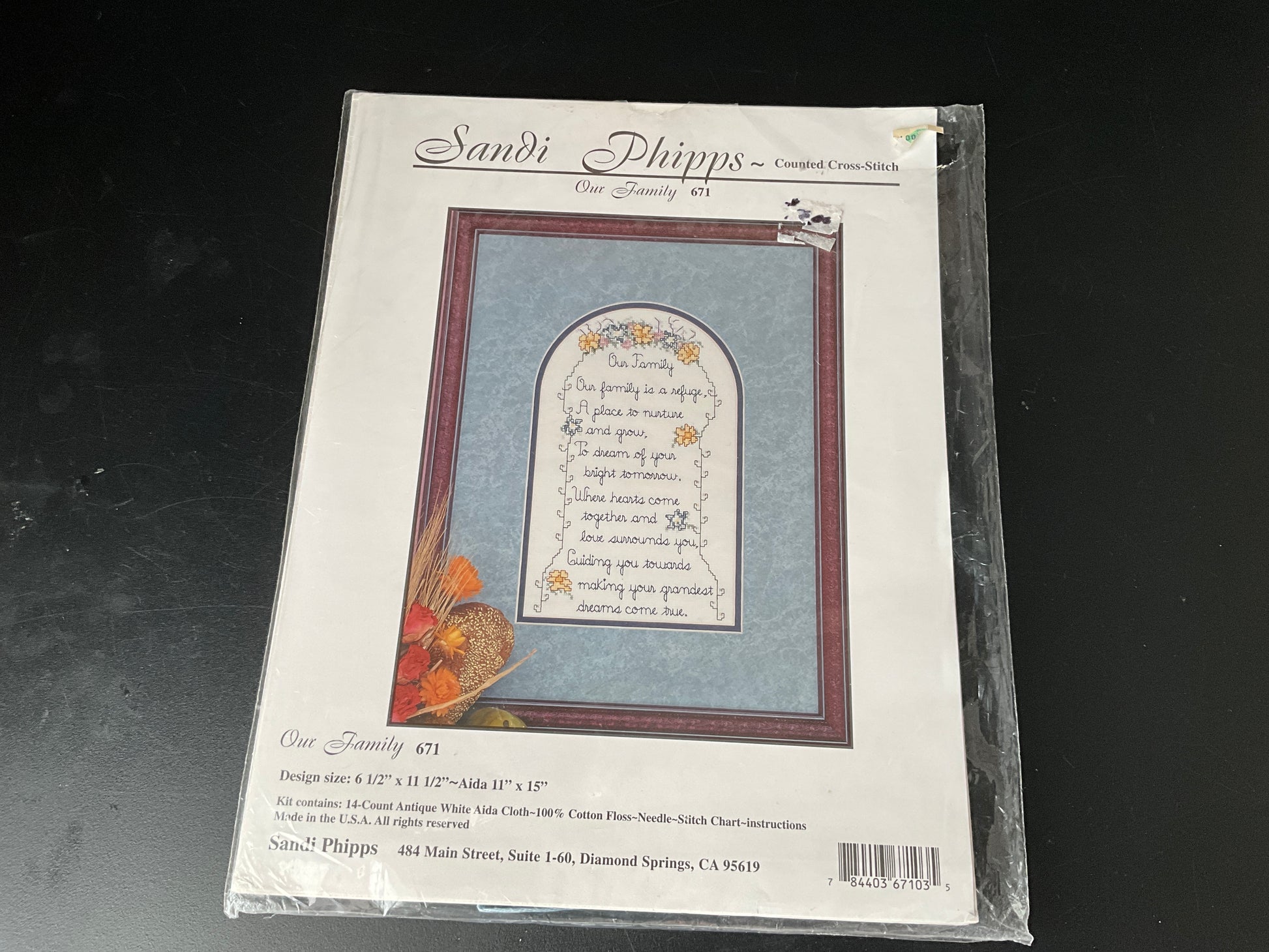 Sandi Phillips Our Family 671 counted cross stitch kit 14 count antique white AIDA