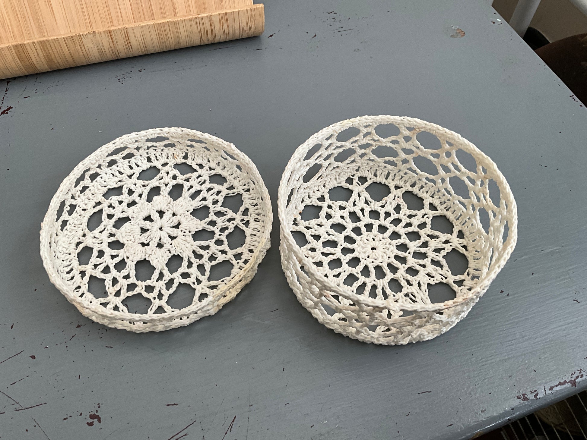 Wonderful white lace 3 inch hardened fabric jewelry/trinket basket with lid