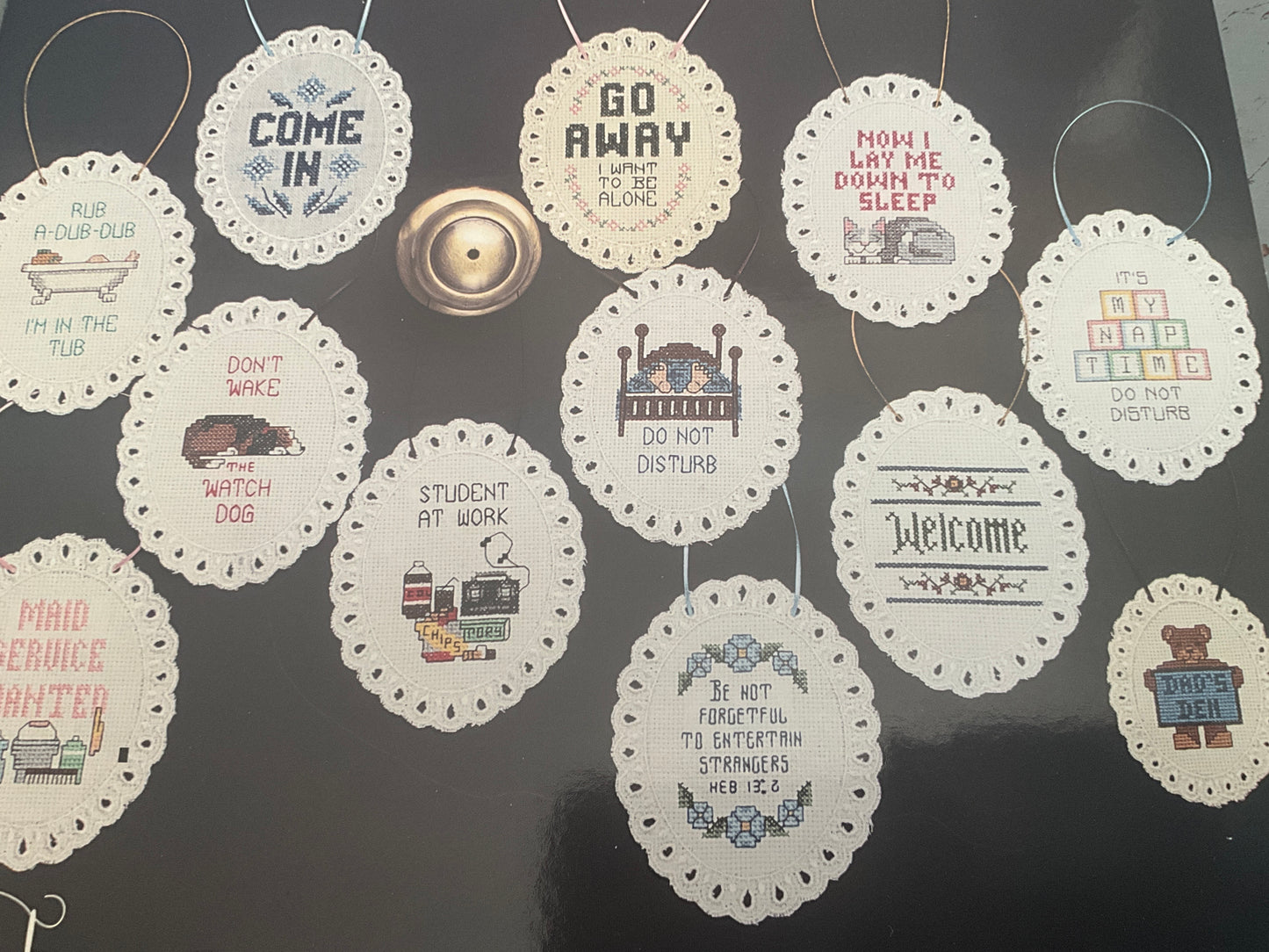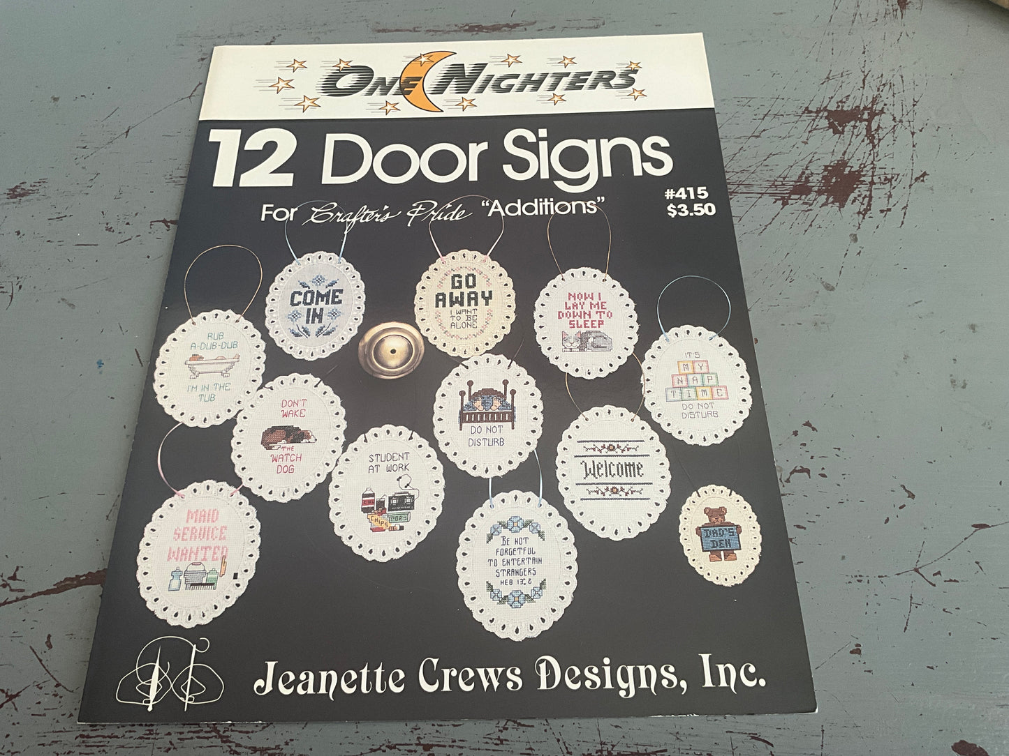 Jeanette Crews Designs One Nighters 12 DoorSigns #415 counted cross stitch chart