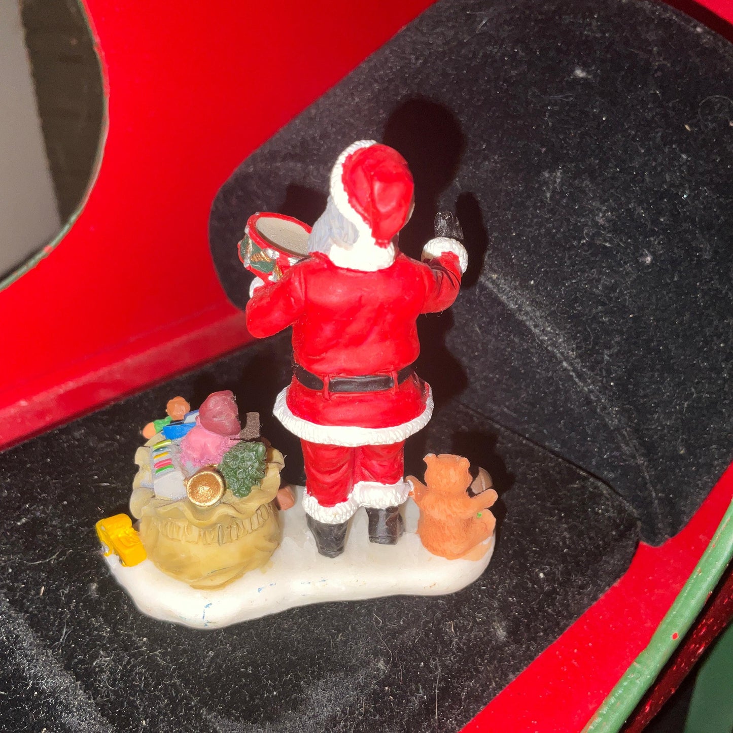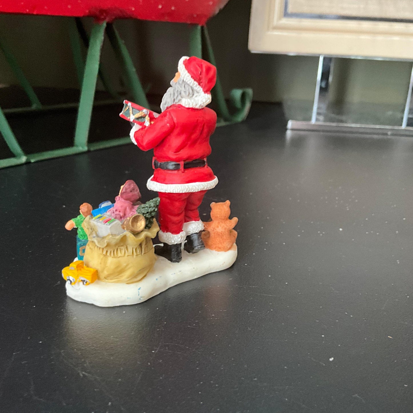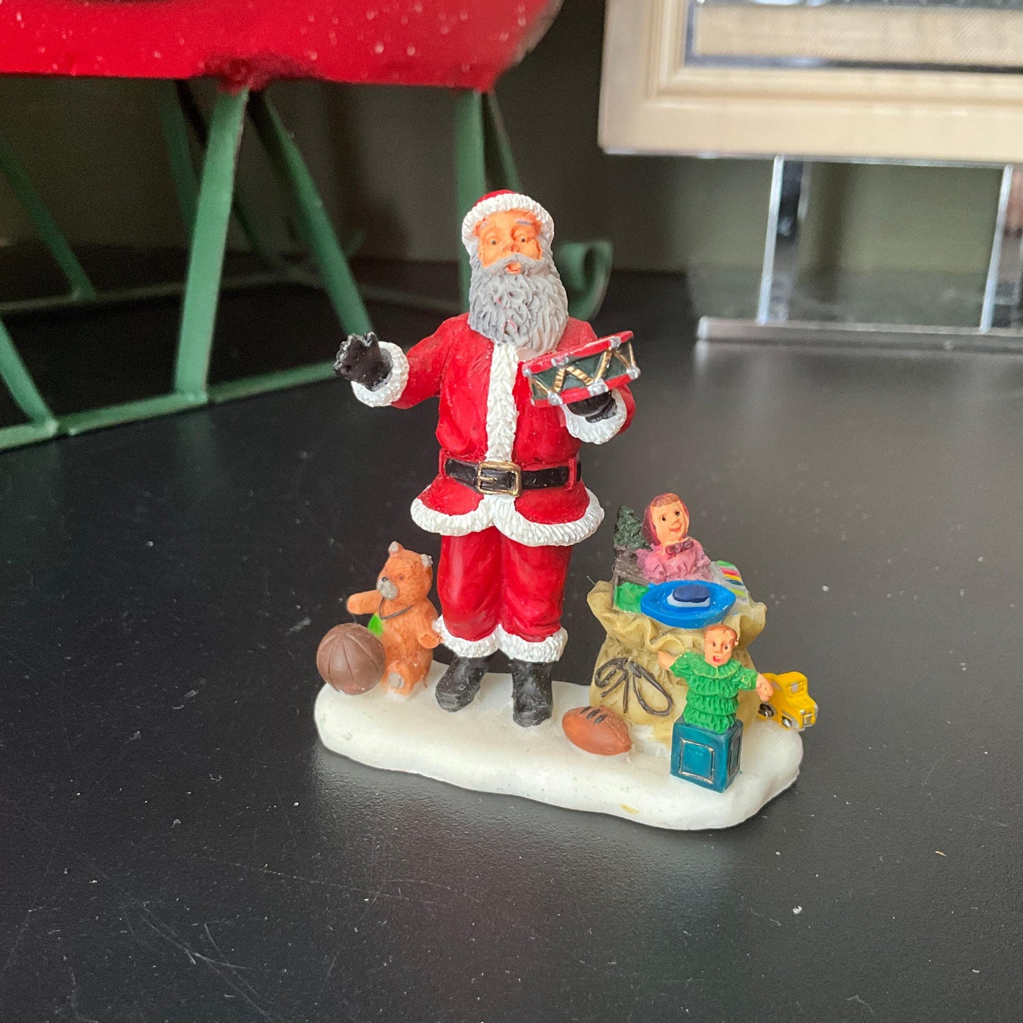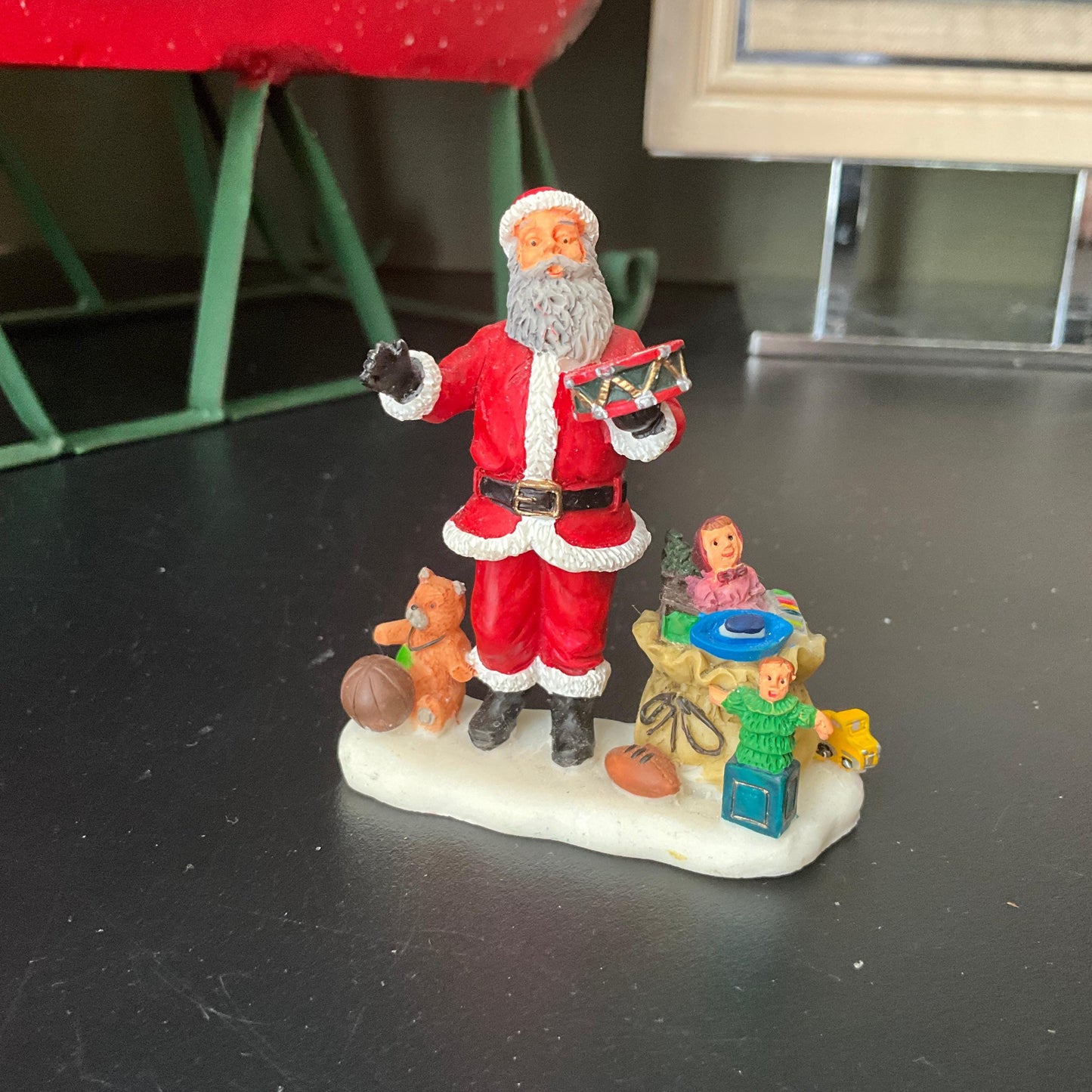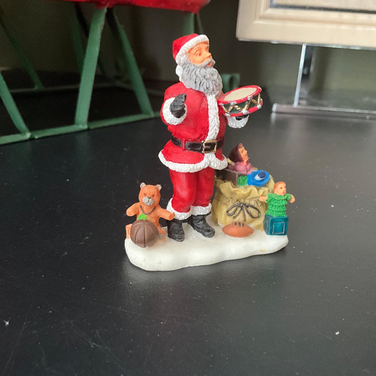 Lemax Santa Claus holding a little toy drum next to his sack of toys collectible figurine