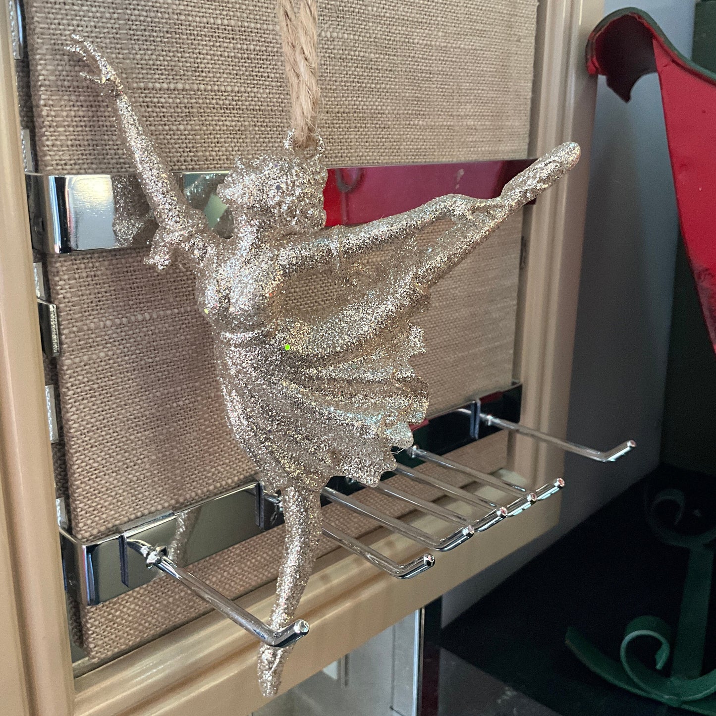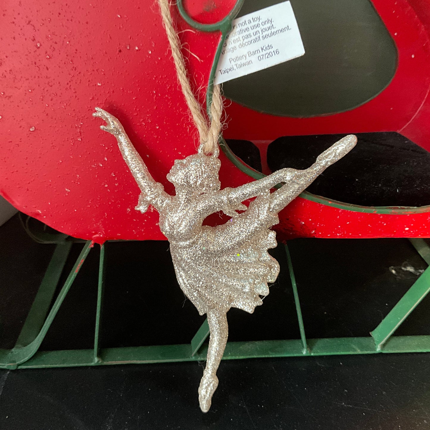 Pottery Barn Kids silver glitter ballerina dancer ornament 2016 very hard to find