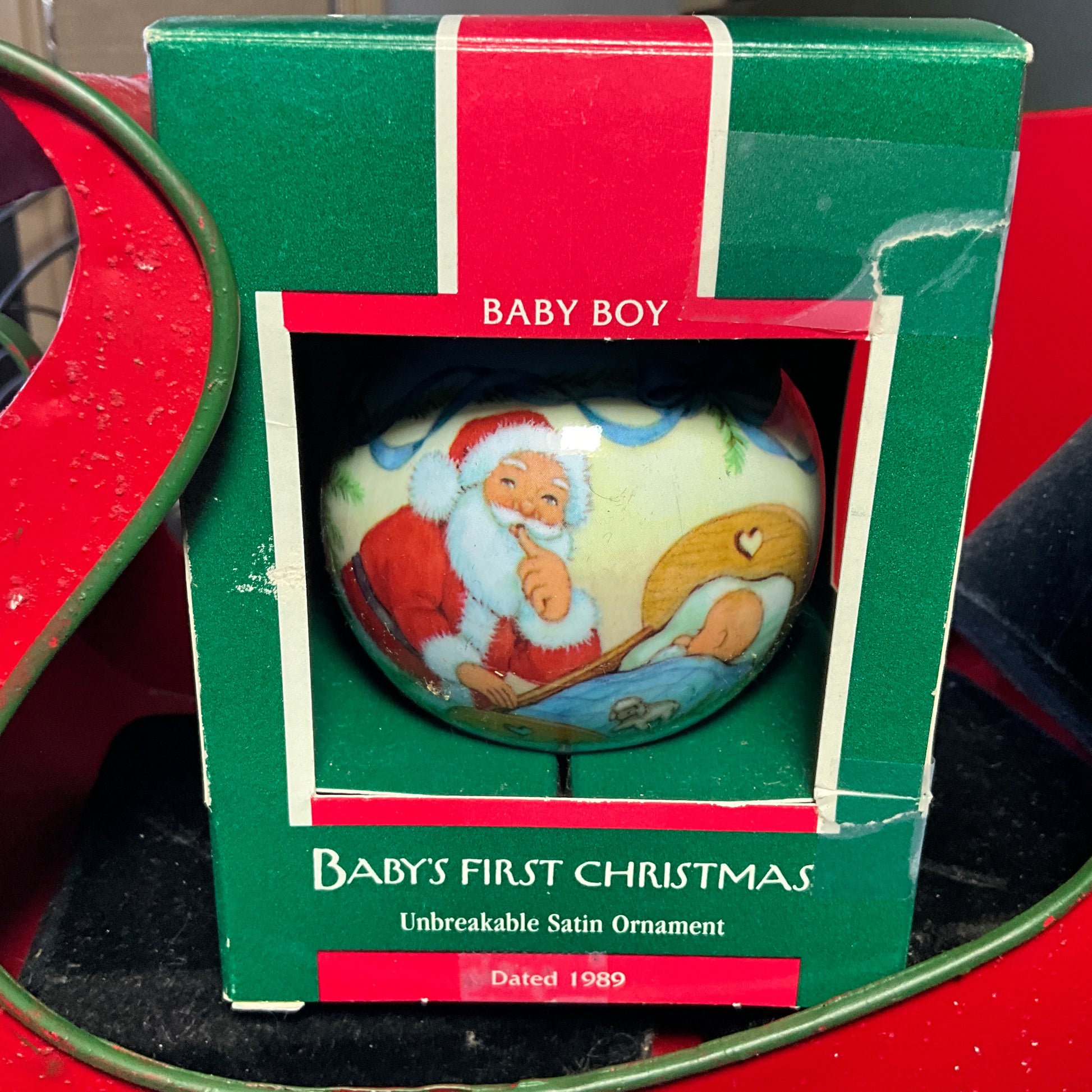 Baby's First Christmas Boy Dated 1989 Satin Ball QX272-5